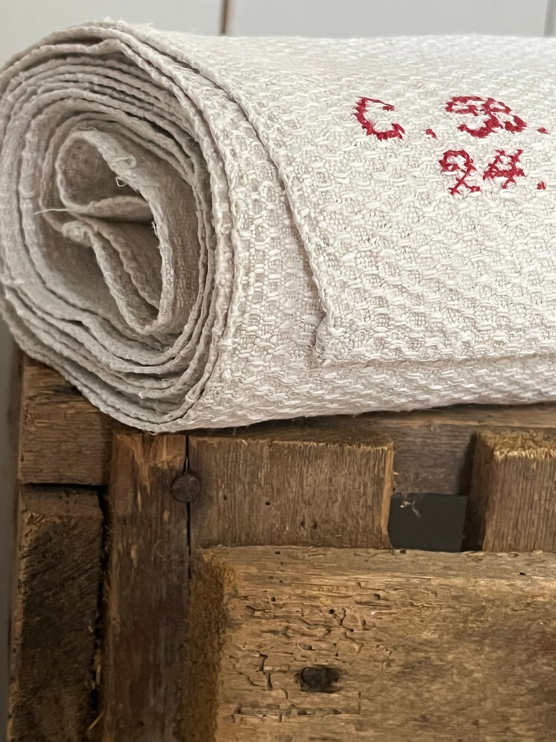 3,15 Meter altes Leinen mit Struktur und Monogramm