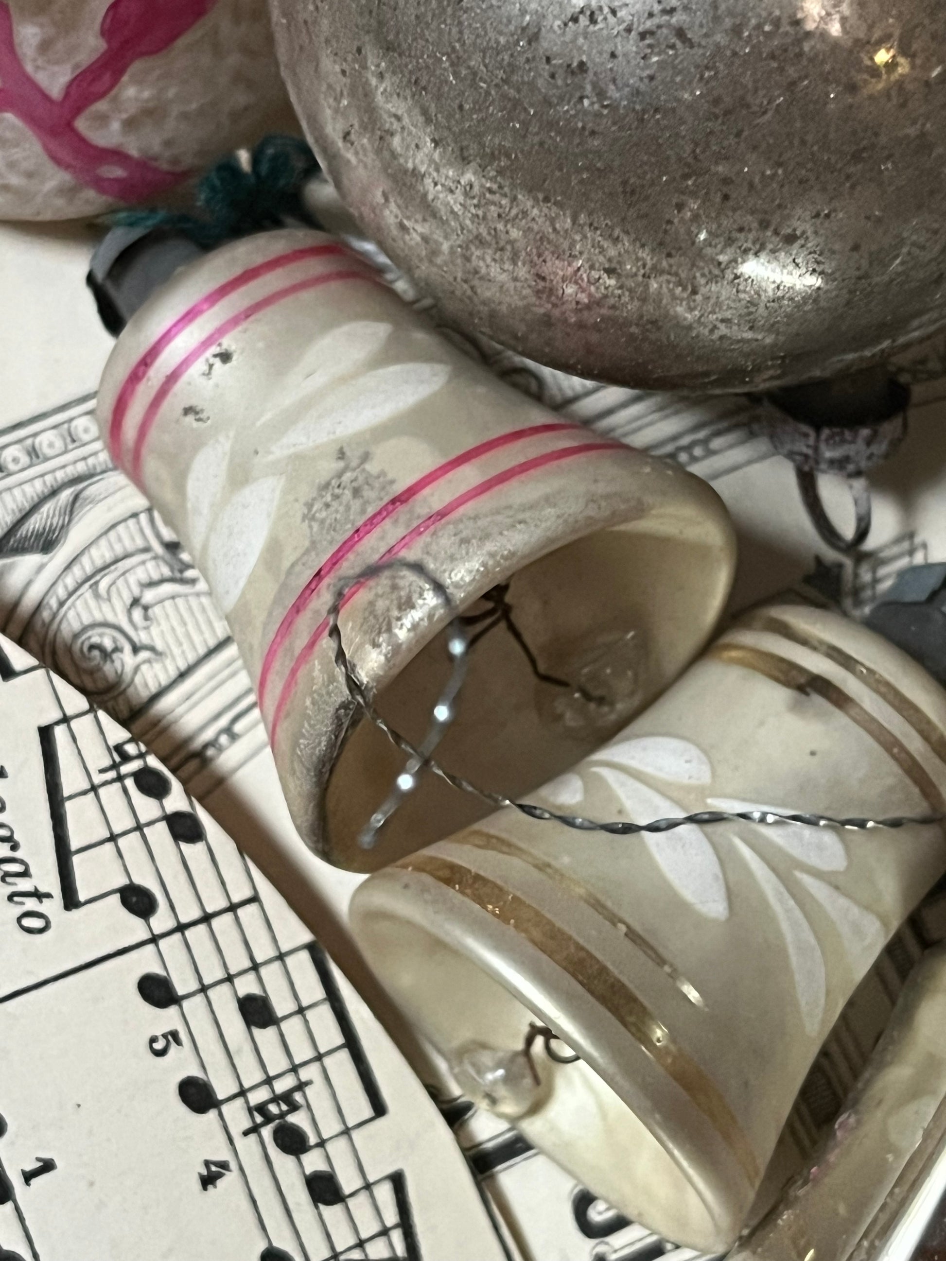 Ist schon wieder soweit? Für Weihnachtsschmuck ist doch eigentlich immer Zeit. In diesem Karton liegt alter Baumschmuck: Insgesamt 11 Formteile - Weihnachtskugeln, Glocken, Traube... Sie sind intakt, haben ein bisschen Patina. Und freuen sich auf den Tannenbaum. Da sie nicht schlecht werden, kann man sie auch jetzt schon einlagern.