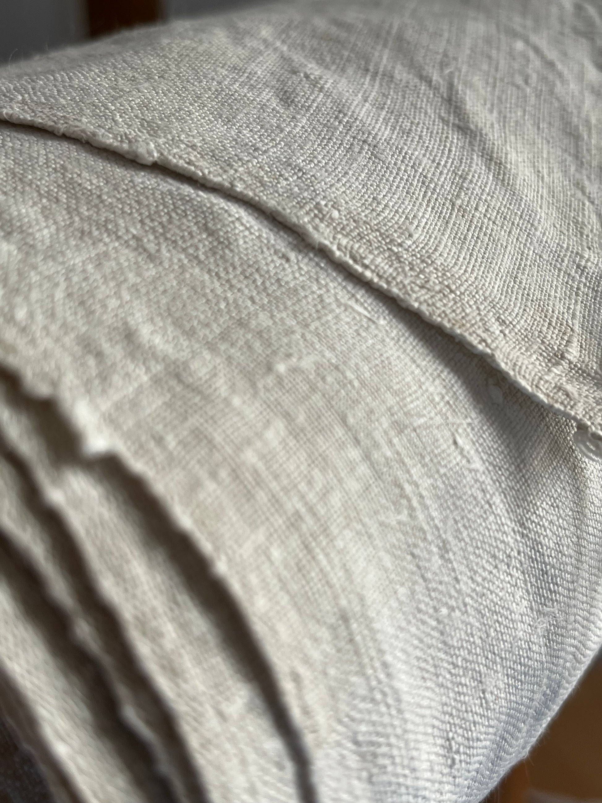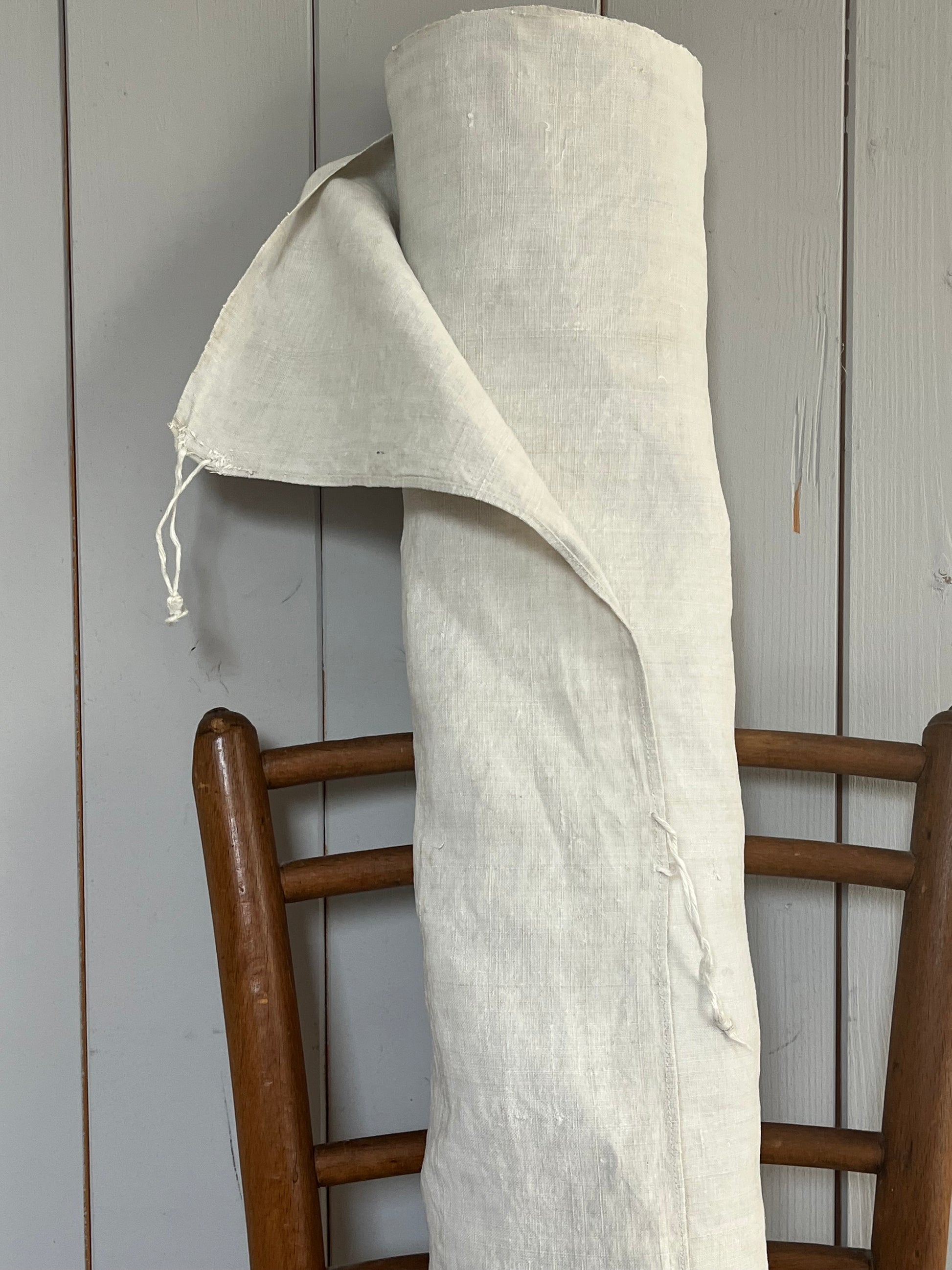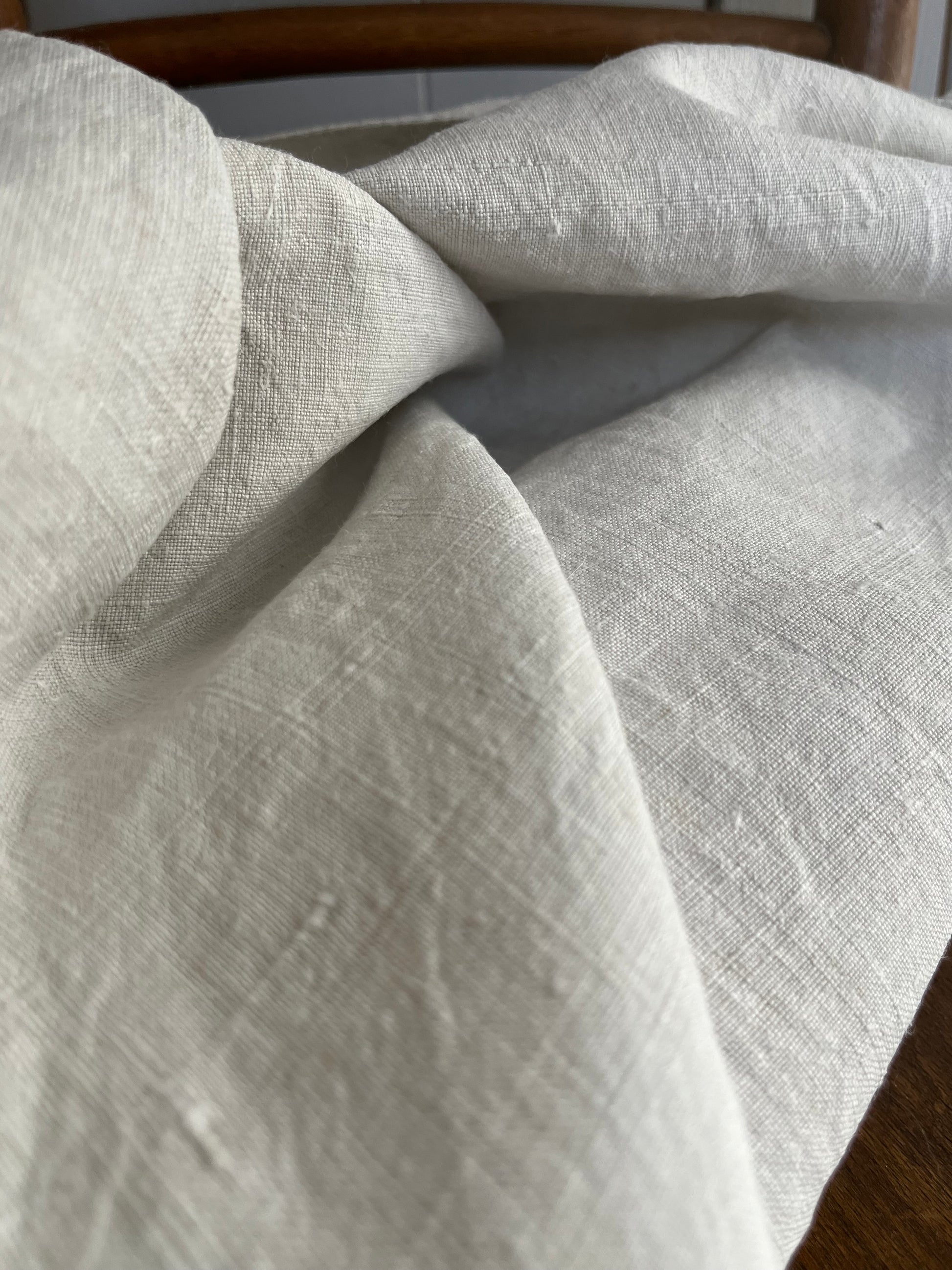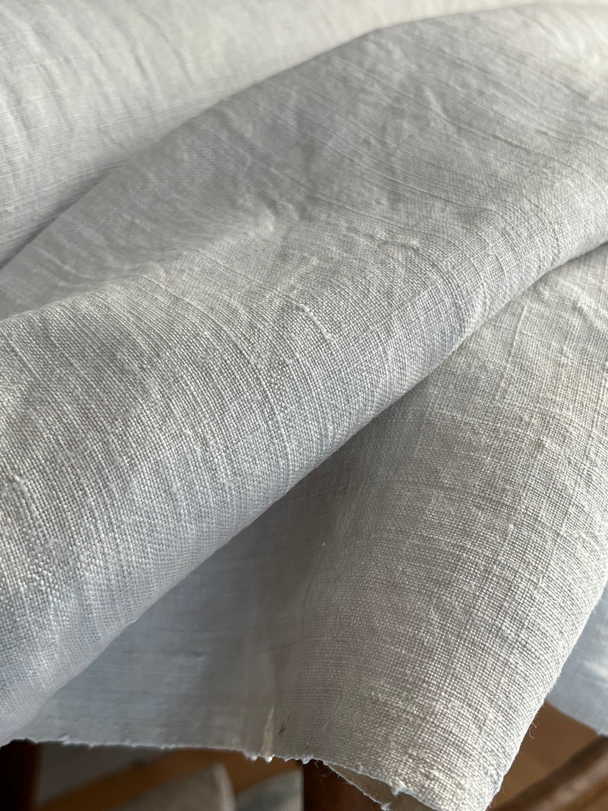Richtig schönes, sattes Leinen. Relativ glatt gewebt. Man erkennt die Flachsfaser, aber der Stoff fühlt sich schön eben und kühl an. Gewebt Anfang 1900. Es sind 5 Meter tolles, fast sauberes Leinen. Die letzten miniminimalen Lagerspuren verschwinden mit den nächsten Waschgängen. Es ist ein dicht gewebtes Leinen, fällt schön schwer, eignet sich für alle Näharbeiten. Kleidung wie Haushaltstextilien. Und der Farbton ist ein Greige. Die Breite beträgt 72 cm.