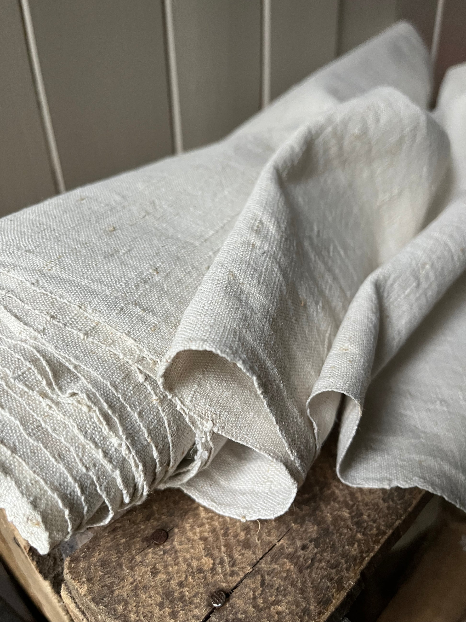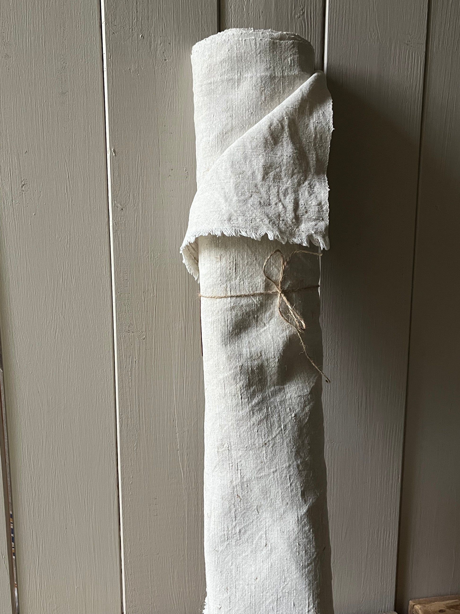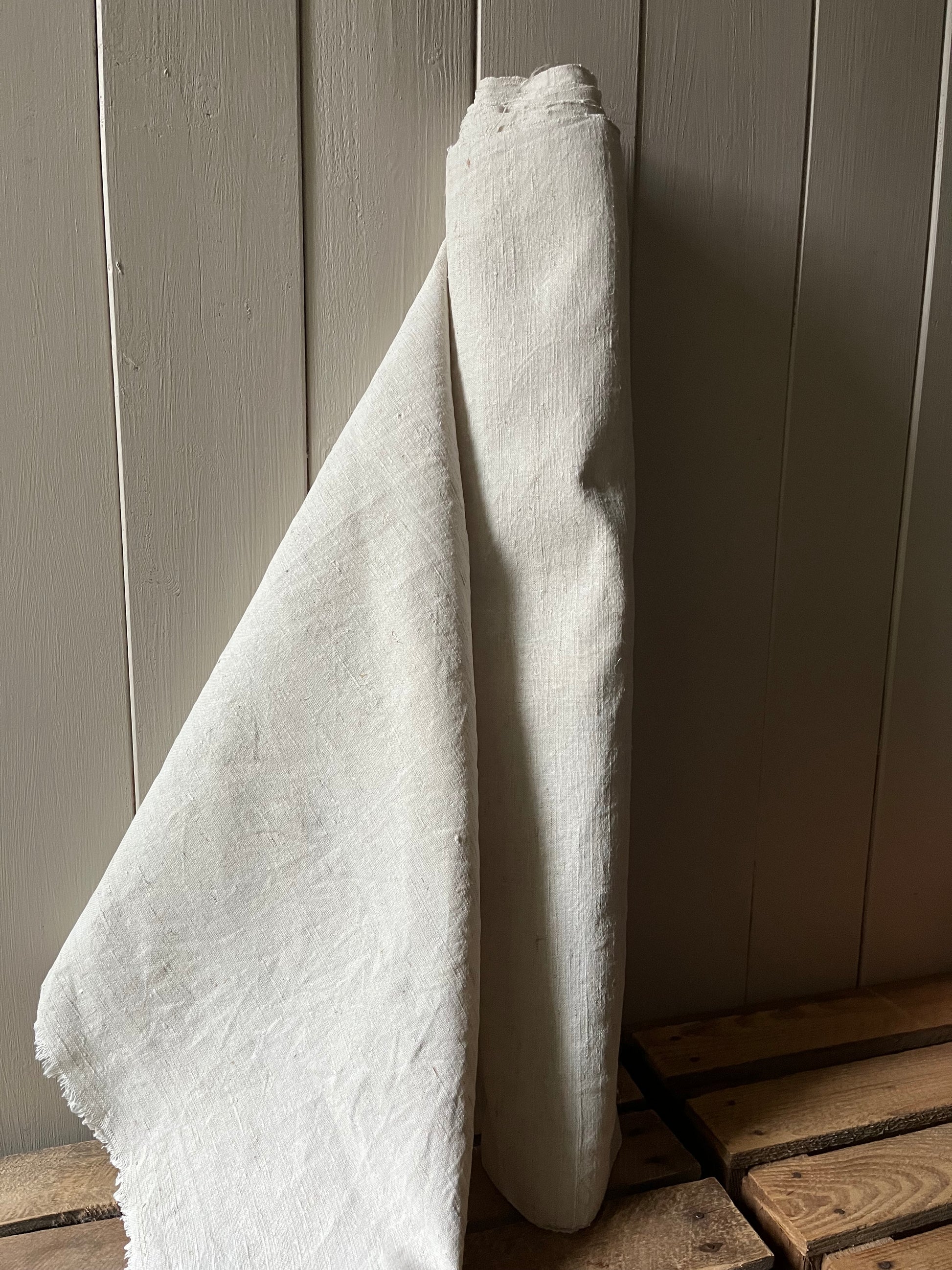 Schönes, sauberes Leinen - und das nach etwa 125 Jahren der Aufbewahrung. Es ist von Hand gewebt, die Struktur ist mittel grob. Der Ballen enthält 6,85 m wunderbares, dichtes Leinen. Die Breite beträgt 0,67 m. Der Stoff eignet sich für jede Art von Nähprojekt. Er ist vorgewaschen, läuft auch nicht mehr ein.
