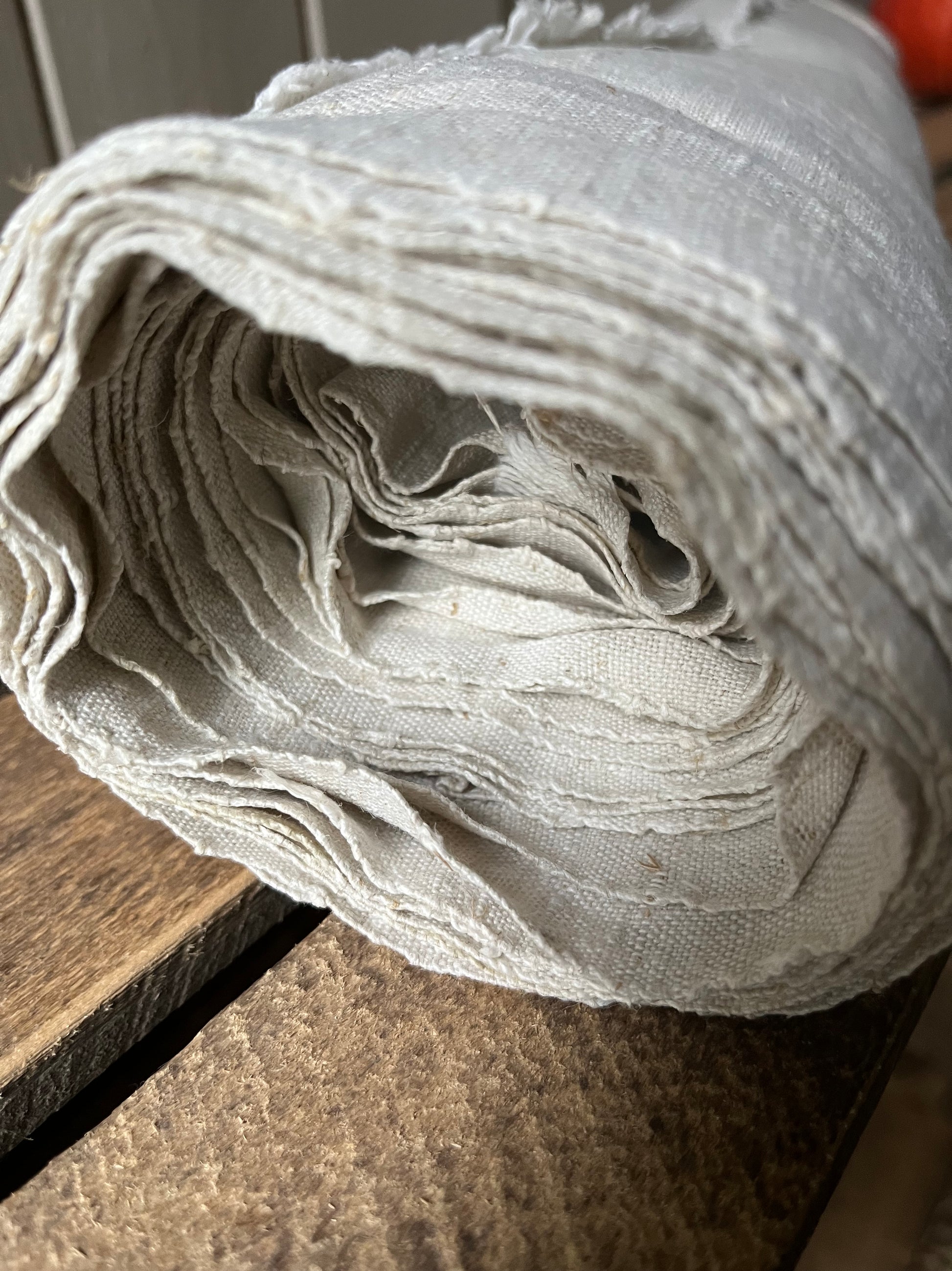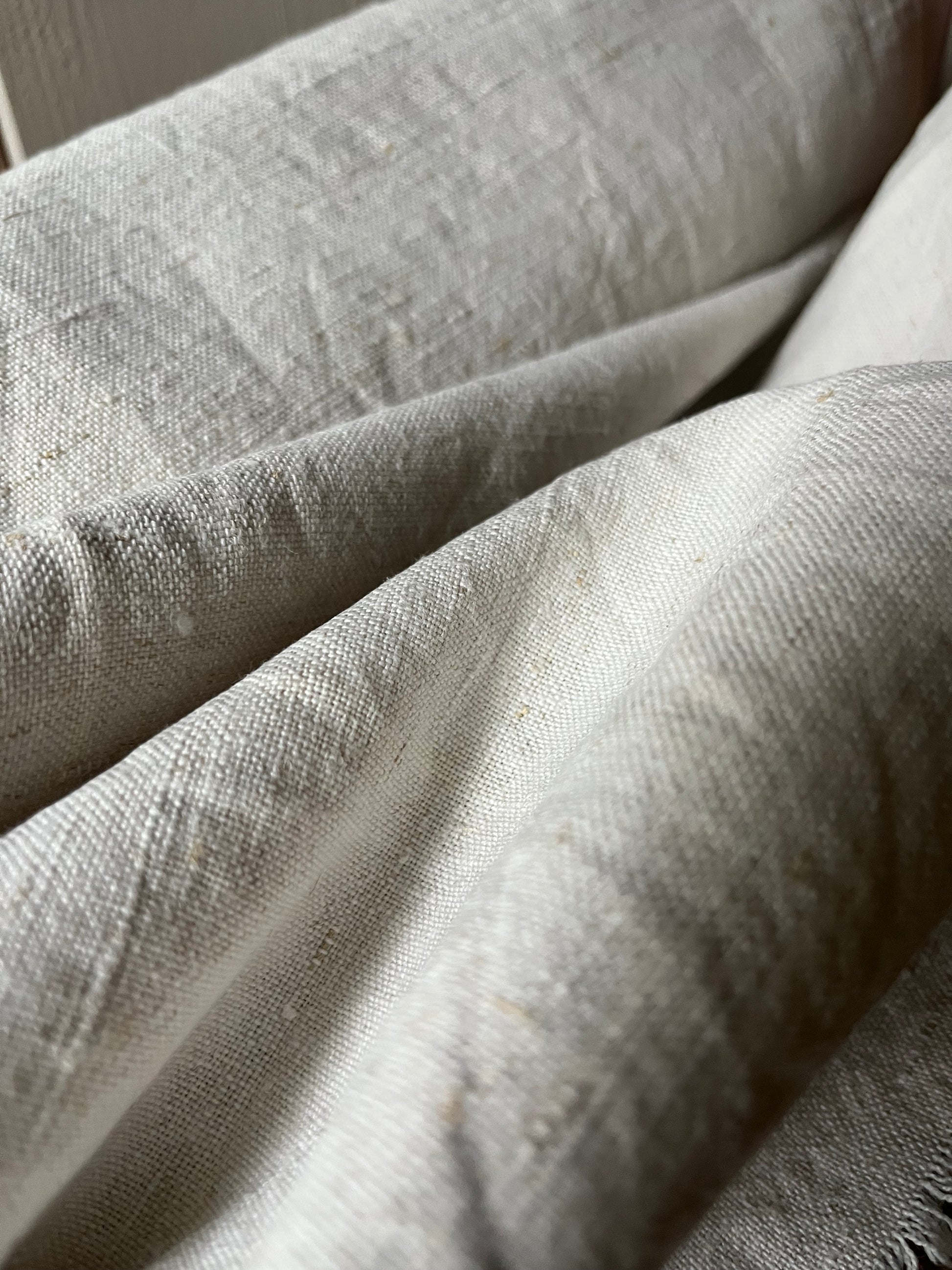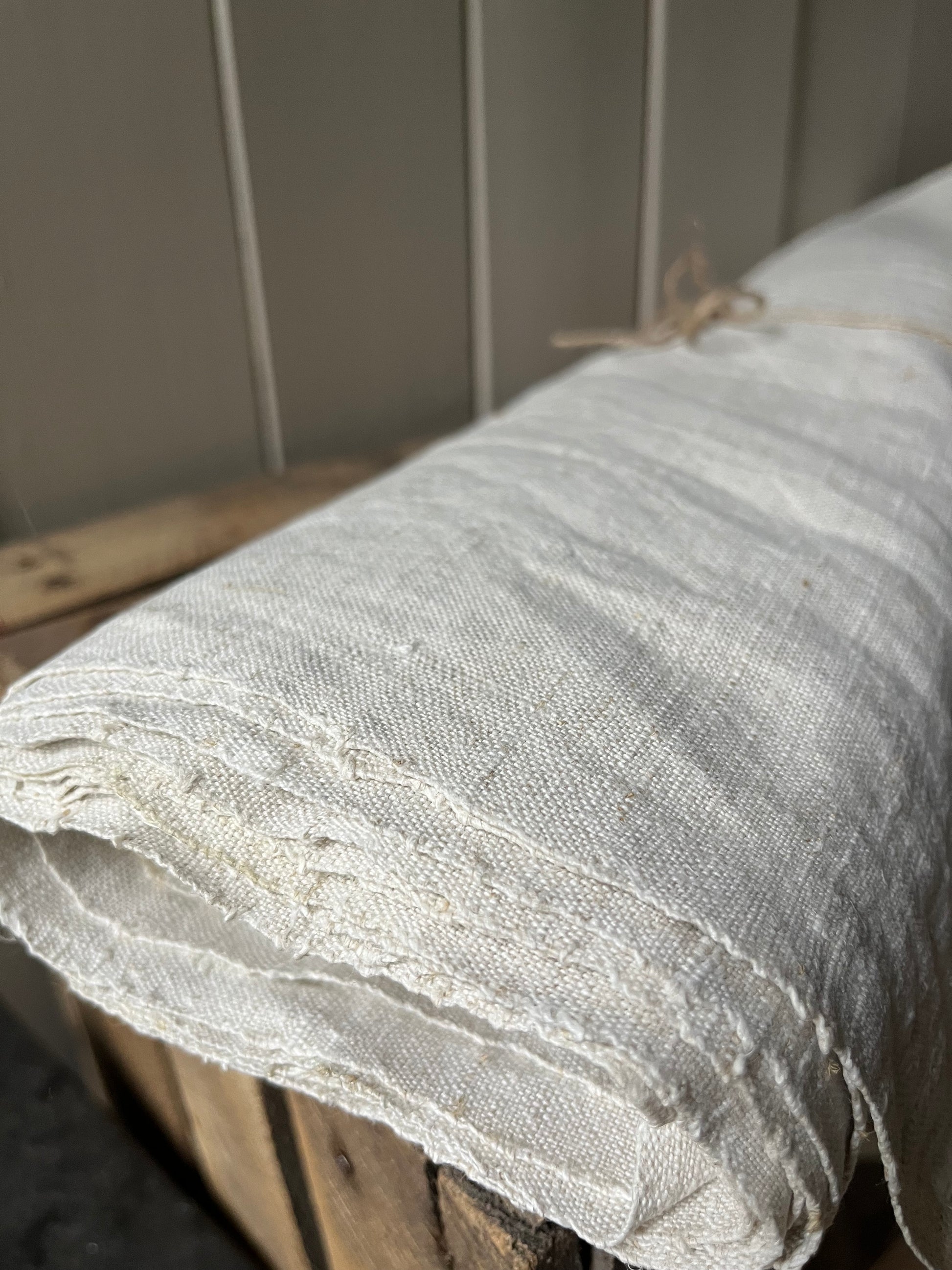 Schönes, sauberes Leinen - und das nach etwa 125 Jahren der Aufbewahrung. Es ist von Hand gewebt, die Struktur ist mittel grob. Der Ballen enthält 6,85 m wunderbares, dichtes Leinen. Die Breite beträgt 0,67 m. Der Stoff eignet sich für jede Art von Nähprojekt. Er ist vorgewaschen, läuft auch nicht mehr ein.