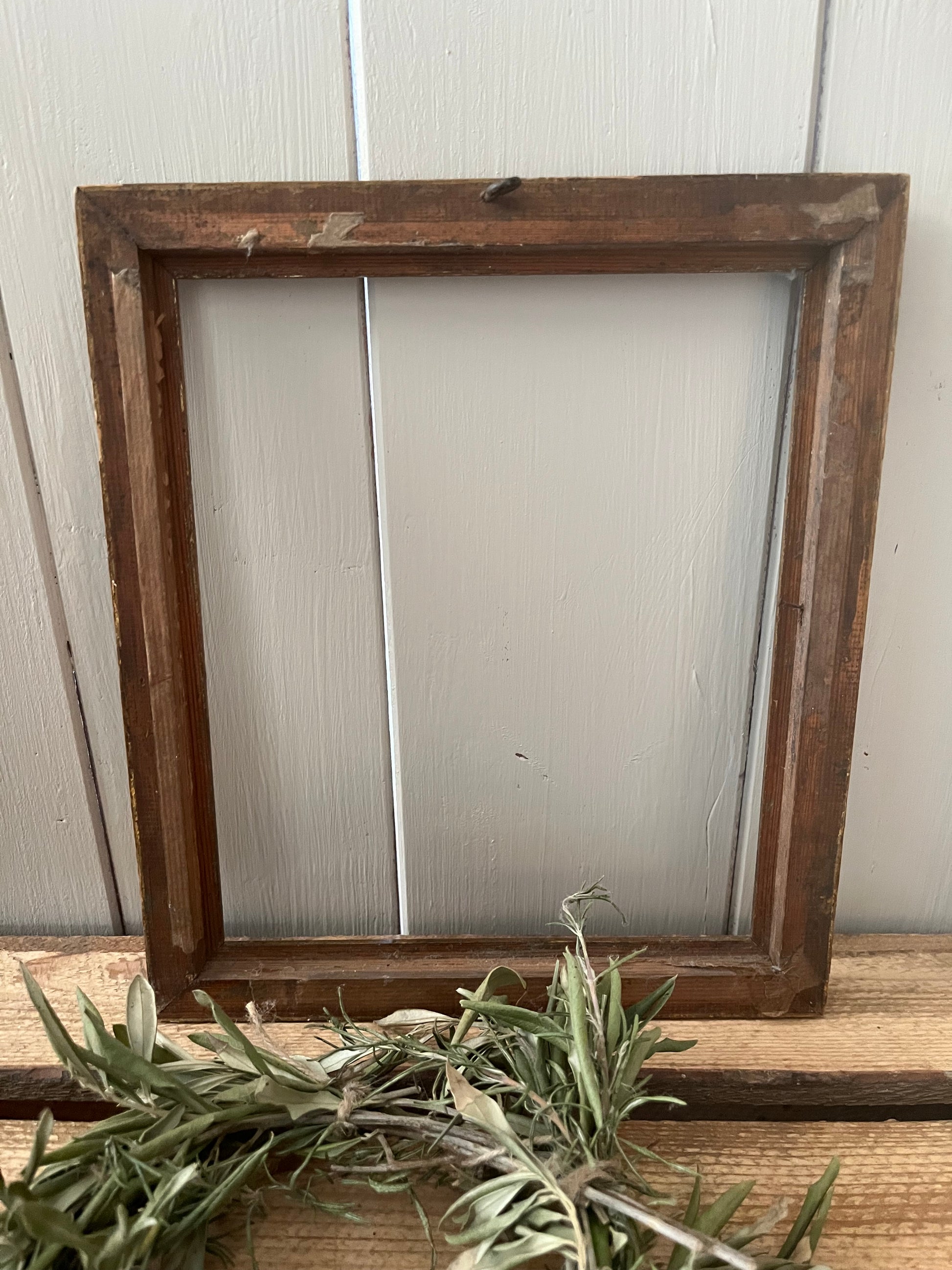 Holz- und Stuckarbeit mit Patina, es gibt minimale Abnutzungen. Gold- und Kupferton. Der Rahmen ist etwa 80 Jahre alt und wartet auf ein neues Gemälde. Maße: 29 × 25 cm.