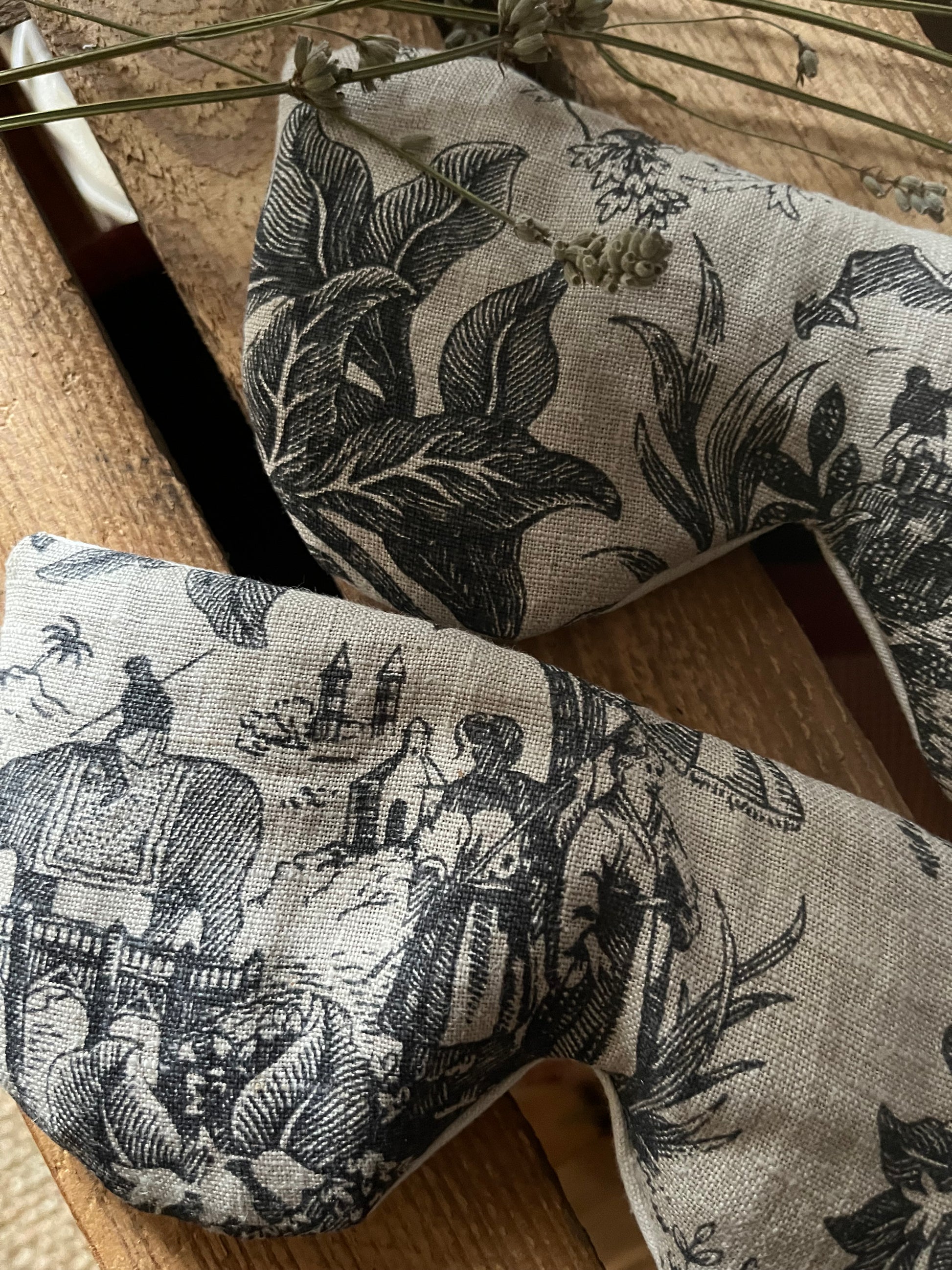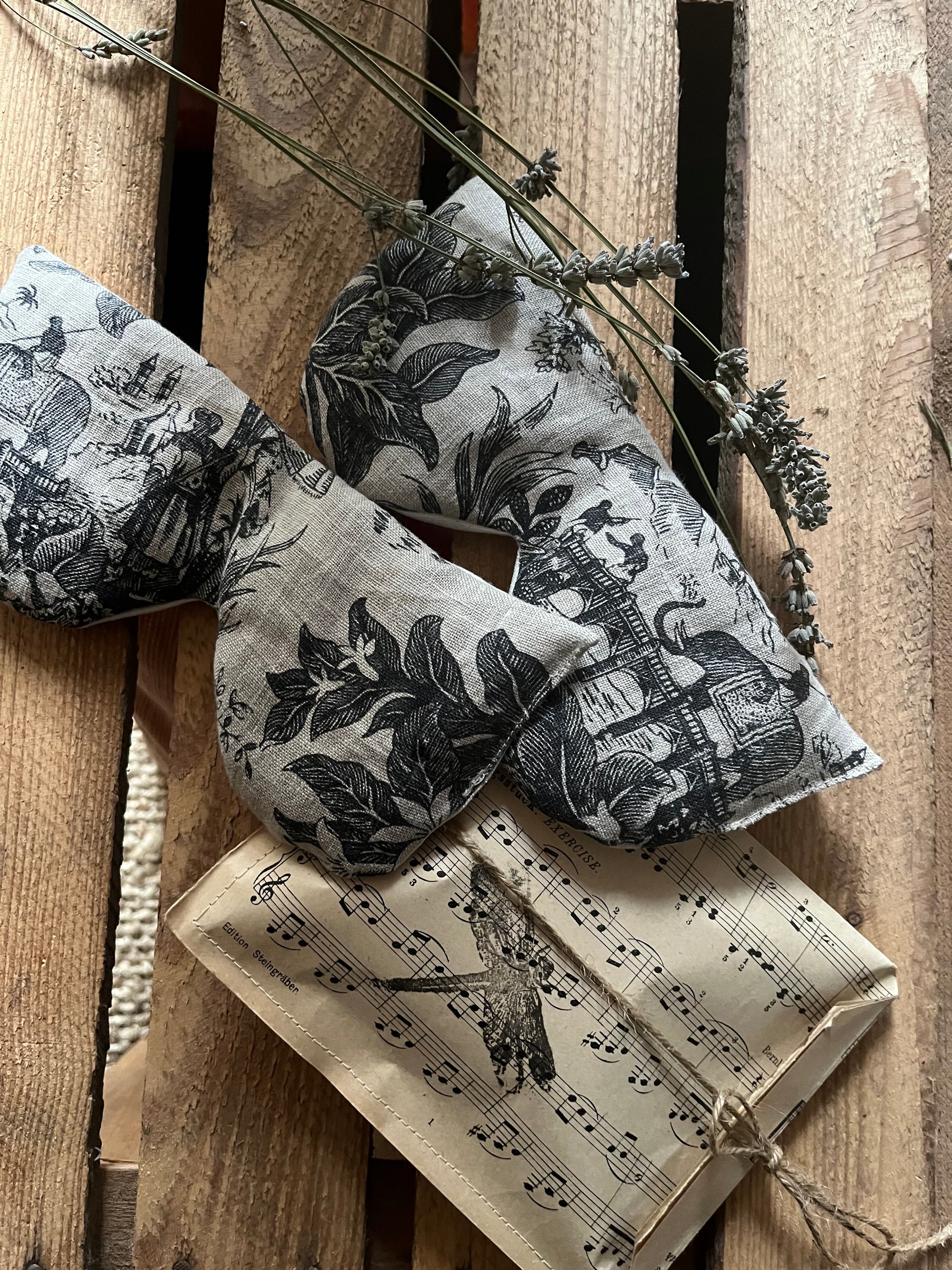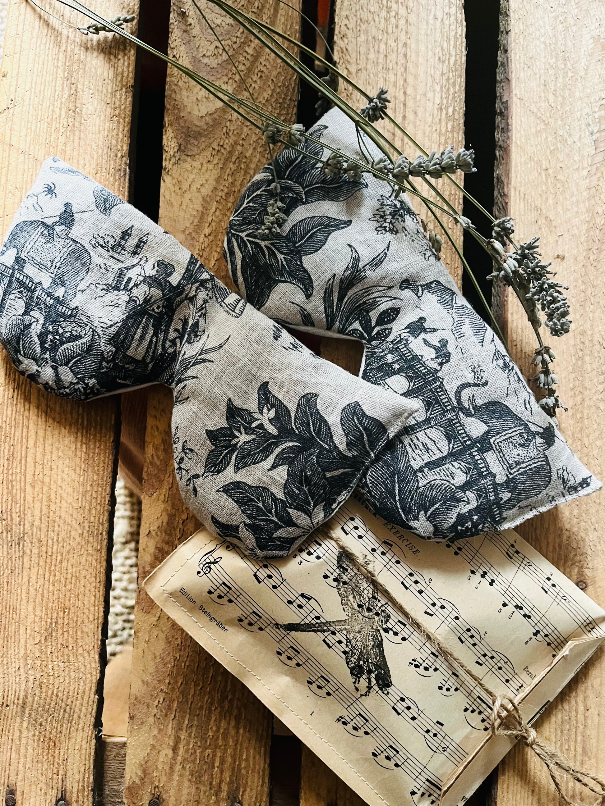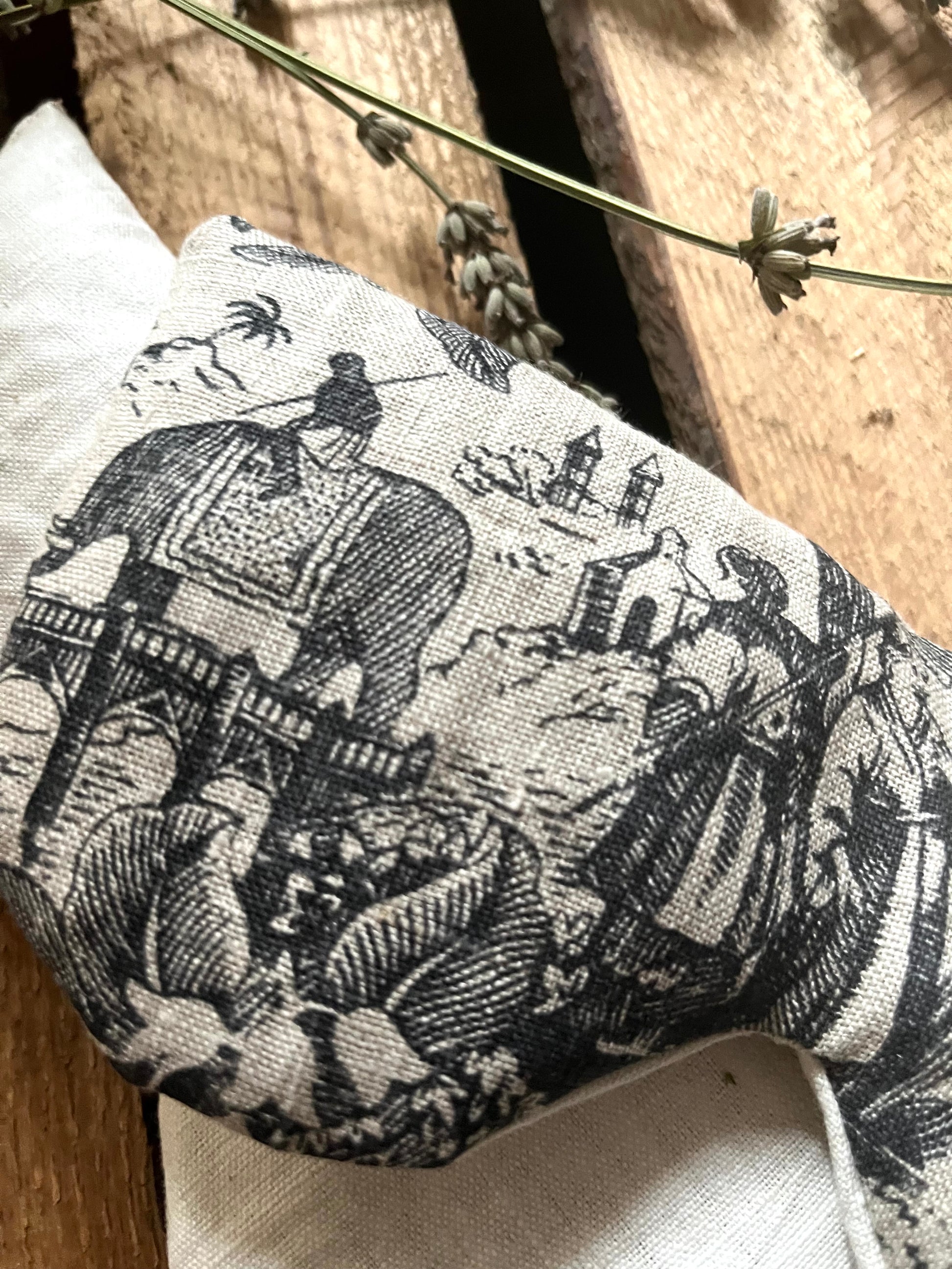 Augenmaske aus Leinen, gefüllt mit Lavendel und Dinkel. Ideal für Yoga oder zur Entspannung zwischendurch. Das Leinen fühlt sich schön kühl und weich auf der Haut an, Lavendel und Dinkel sorgen für einen entspannenden Duft. Die Vorderseite der Maske zeigt ein Toile de Jouy mit indonesischem Motiv. Die Rückseite ist aus altem Leinen unifarben. Einfach auf die geschlossenen Augen legen und 10 Minuten entspannt und zur Ruhe kommen.