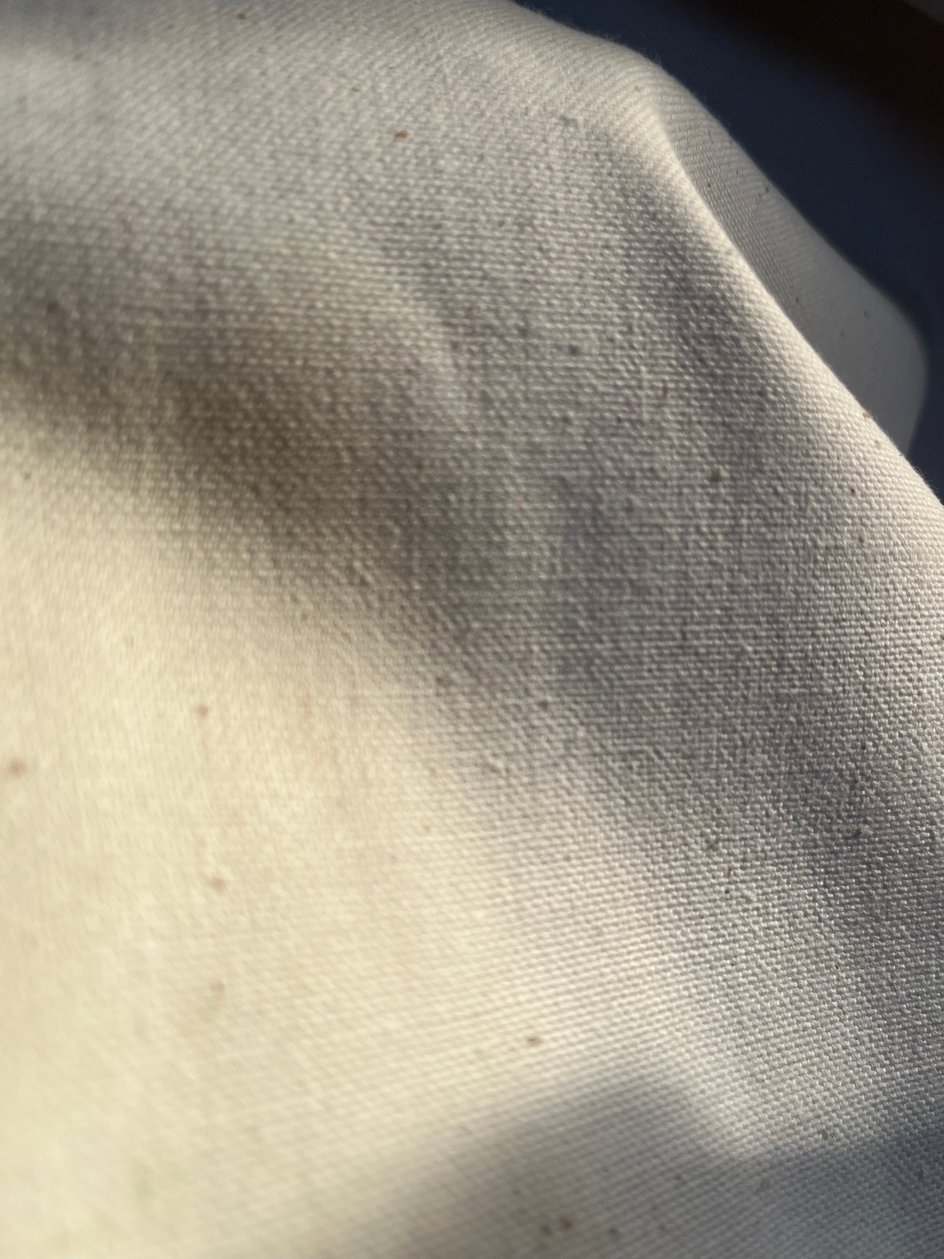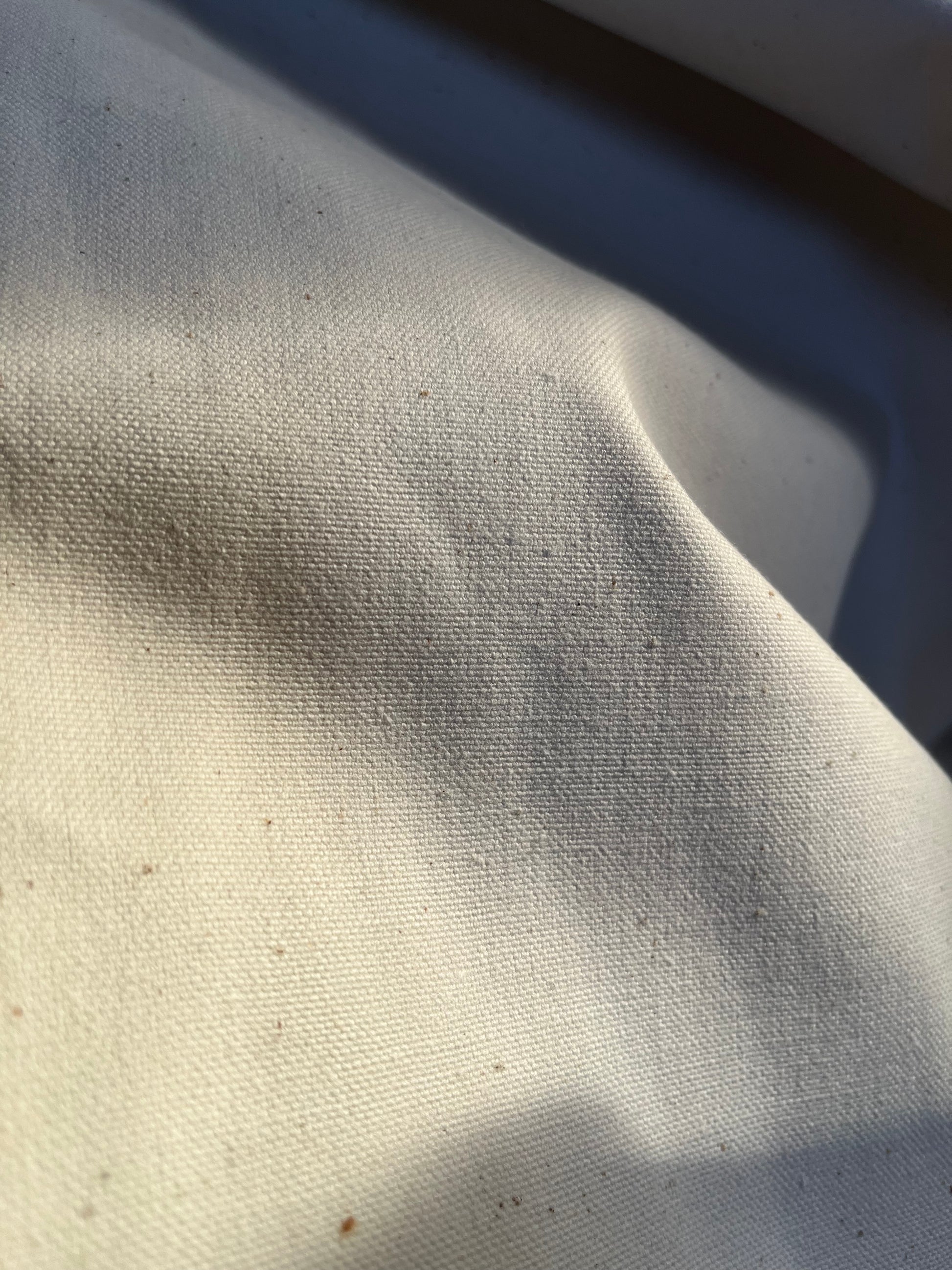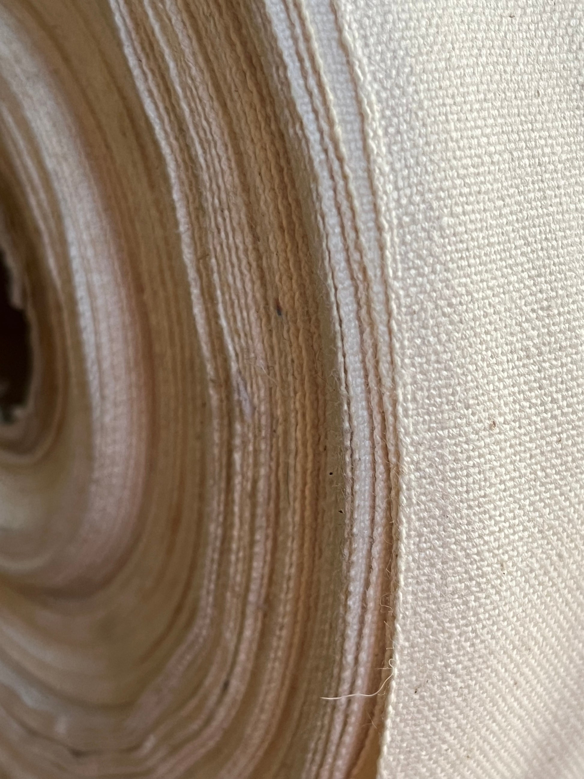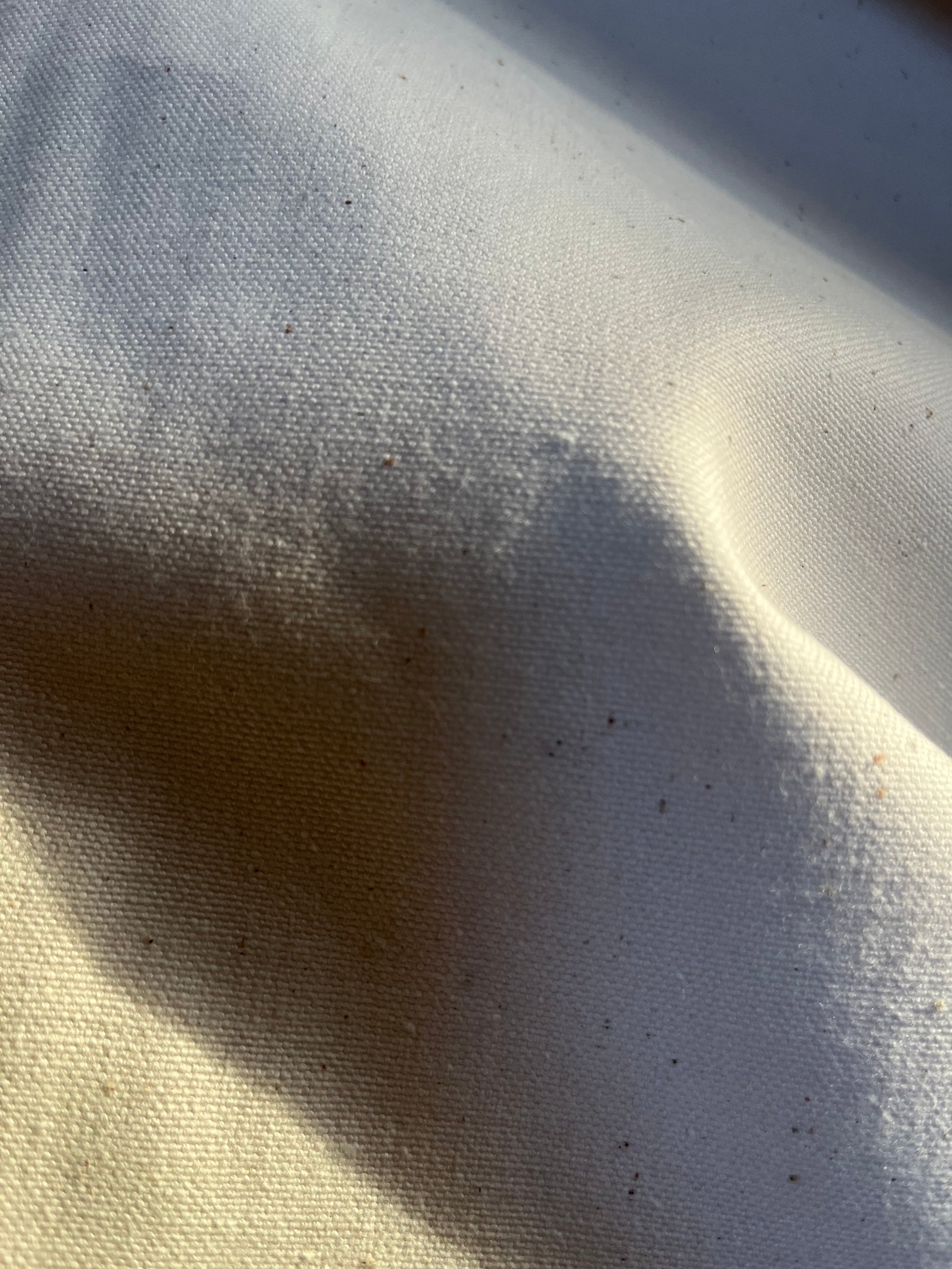 Bäckerleinen oder Gärtuch kommt dann zum Einsatz, wenn besonders Hefeteig ruhen soll. Das Tuch schützt den Teig davor auszutrocknen und vor Zugluft. Es ist dicht gewebt, so dicht, dass der Teig nicht durch das Gewebe quillt oder haften bleibt. Das Leinen wird, bevor der Teig darauf kommt, mit etwas Mehl bestäubt. Es nimmt Feuchtigkeit gut auf und gibt sie wieder ab. Bäckerleinen ist außerdem wunderbar geeignet, um darauf zu malen. Man kann es also auch als Leinwand verwenden, es muss aber vorher behandelt werden. Dieses Leinen stammt von einem Bäcker, ist etwa 50 Jahre alt, unbehandelt. Es misst in der Breite circa 56 cm. Man kann es ganz normal in der Waschmaschine waschen, aber nicht mit Bleiche oder chemischen Fleckenreinigern behandeln. Der Stoff wird pro Meter verkauft.