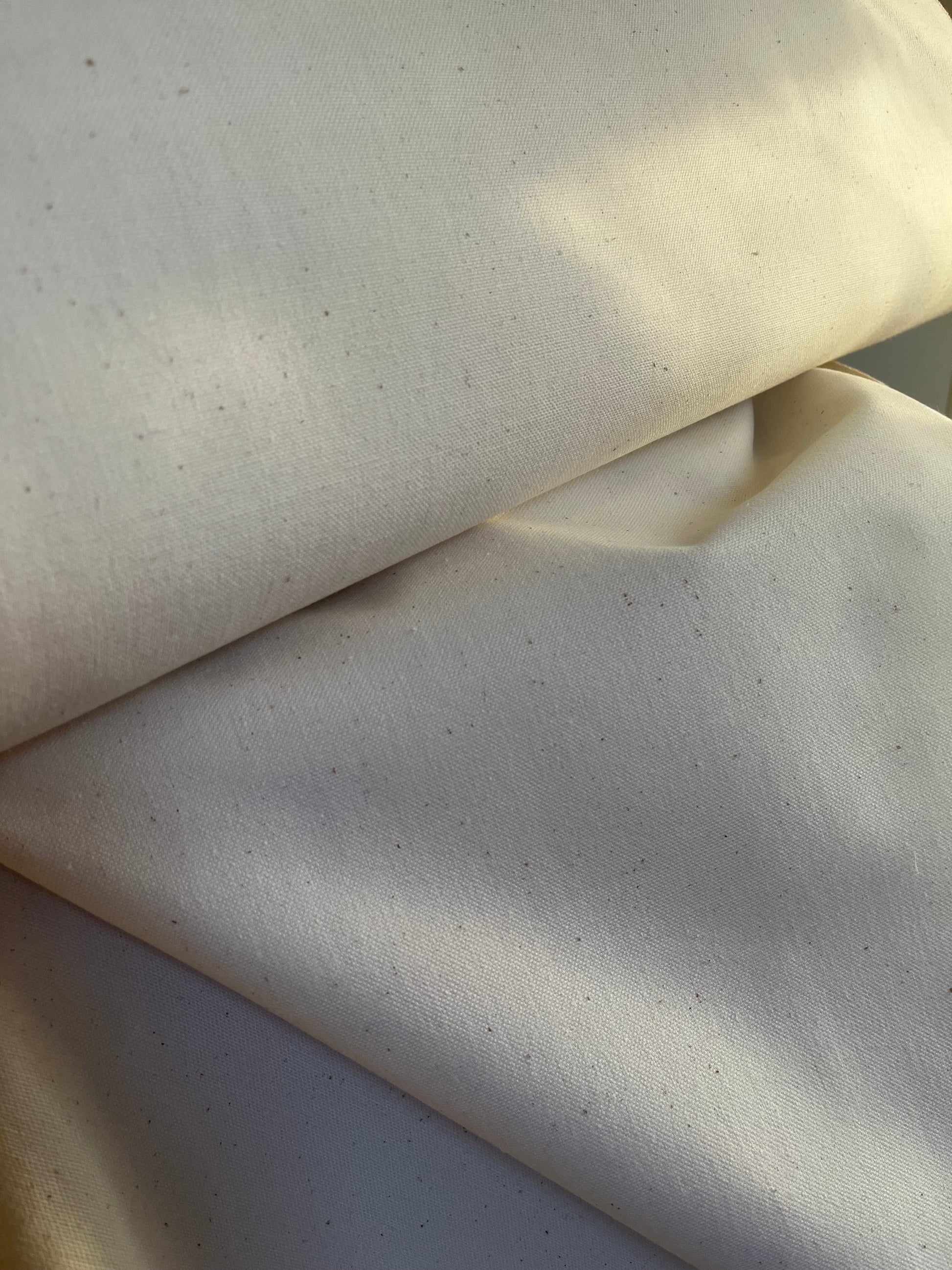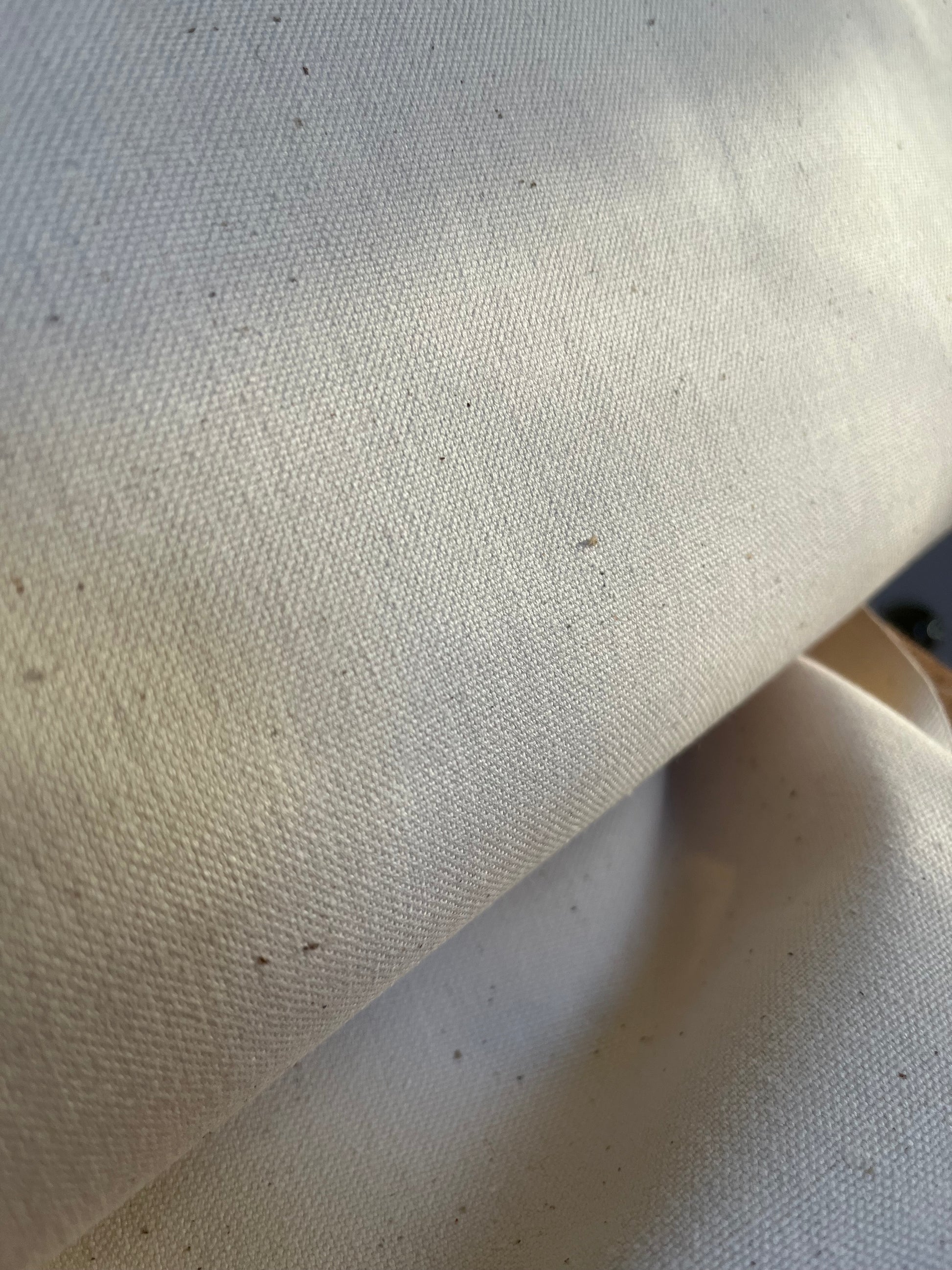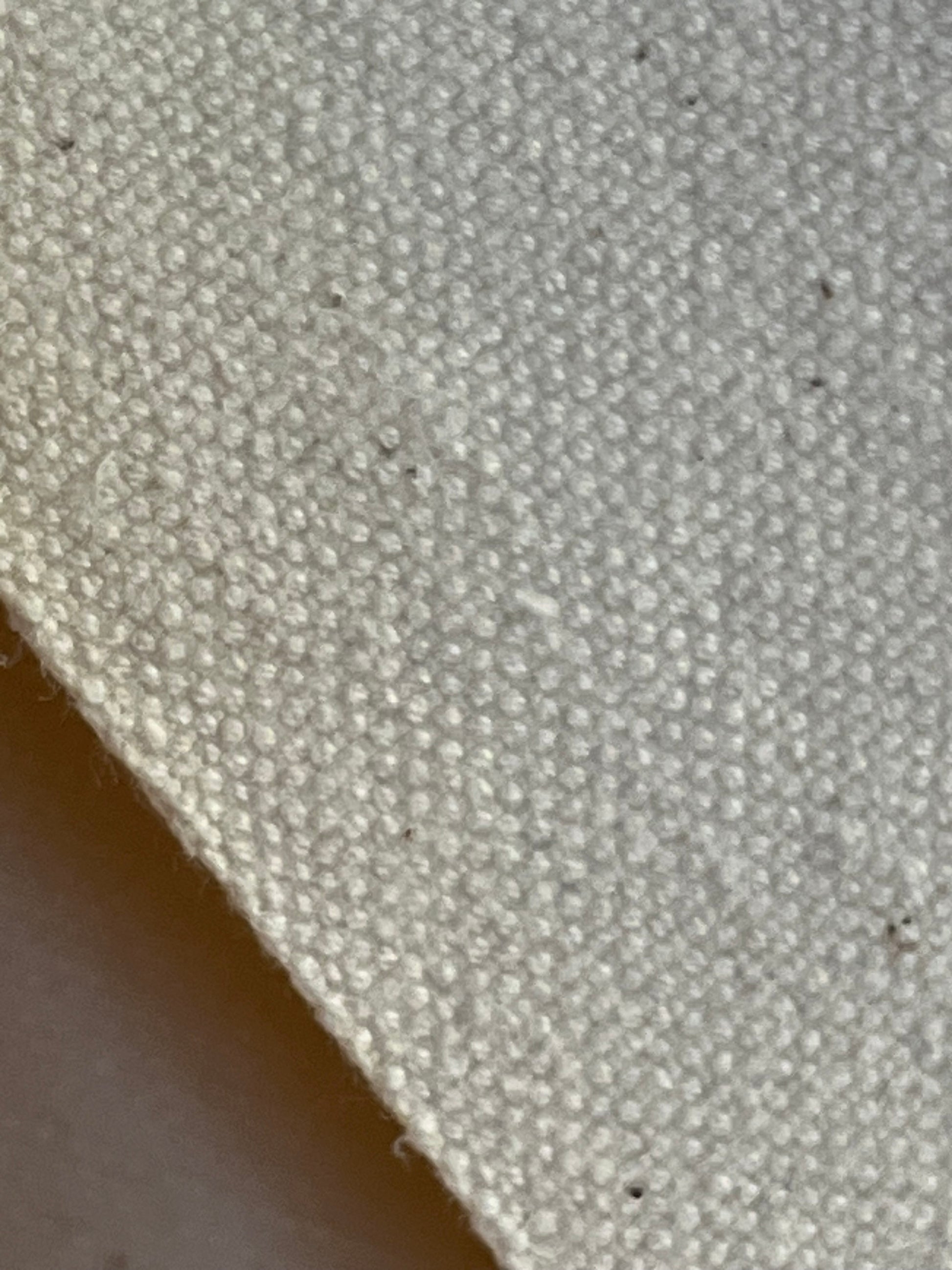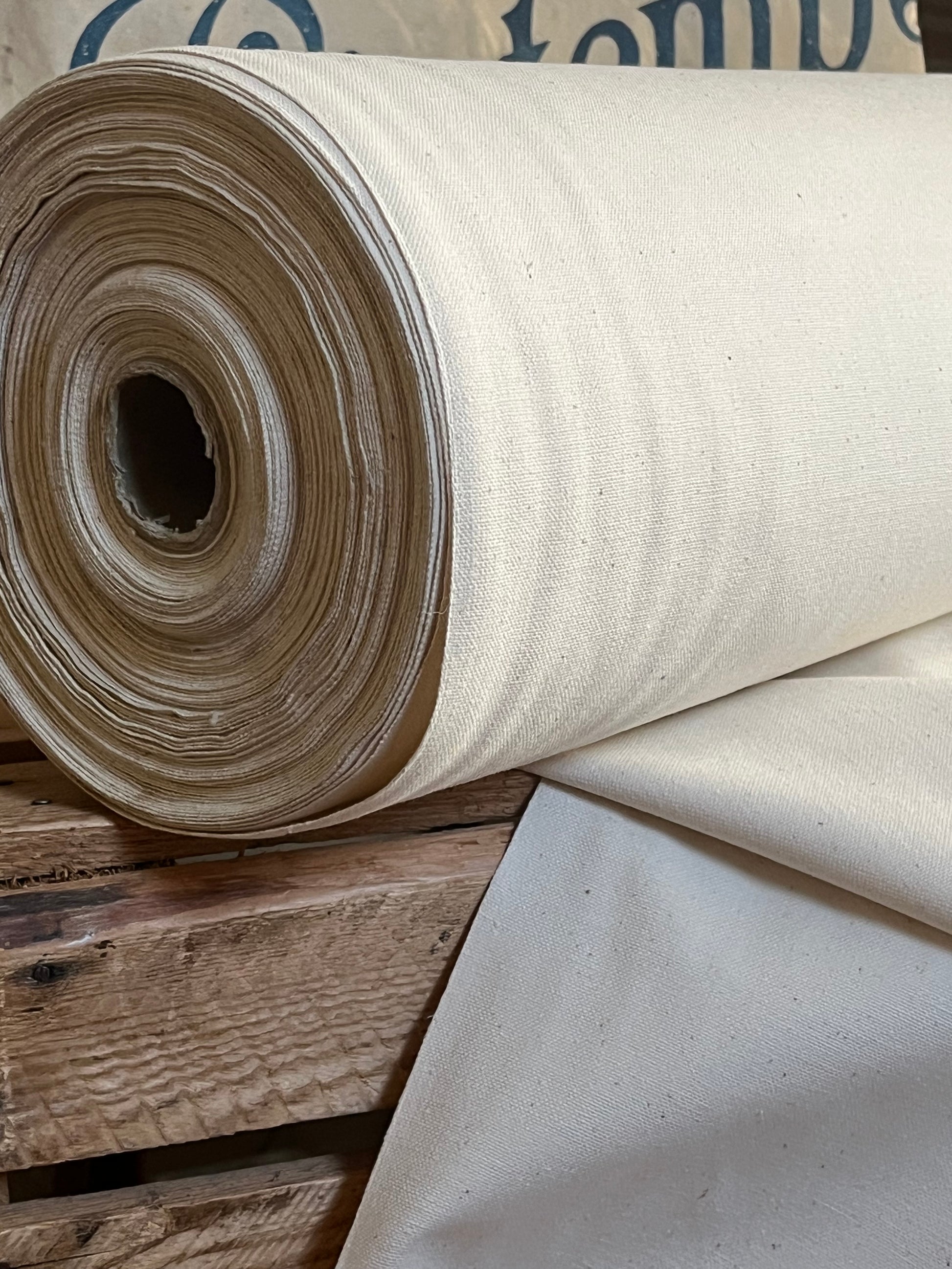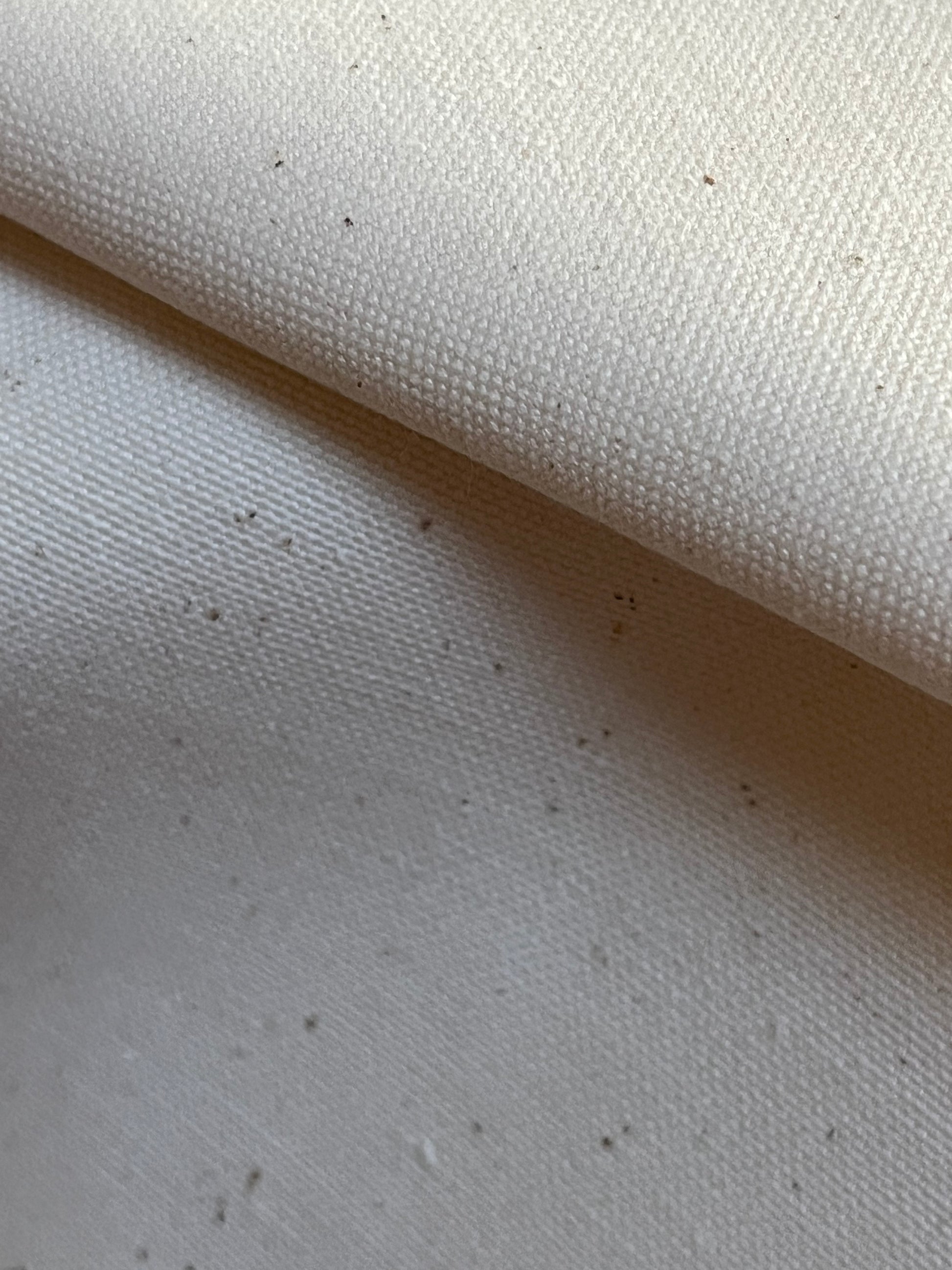 Bäckerleinen oder Gärtuch kommt dann zum Einsatz, wenn besonders Hefeteig ruhen soll. Das Tuch schützt den Teig davor auszutrocknen und vor Zugluft. Es ist dicht gewebt, so dicht, dass der Teig nicht durch das Gewebe quillt oder haften bleibt. Das Leinen wird, bevor der Teig darauf kommt, mit etwas Mehl bestäubt. Es nimmt Feuchtigkeit gut auf und gibt sie wieder ab. Bäckerleinen ist außerdem wunderbar geeignet, um darauf zu malen. Man kann es also auch als Leinwand verwenden, es muss aber vorher behandelt werden. Dieses Leinen stammt von einem Bäcker, ist etwa 50 Jahre alt, unbehandelt. Es misst in der Breite circa 56 cm. Man kann es ganz normal in der Waschmaschine waschen, aber nicht mit Bleiche oder chemischen Fleckenreinigern behandeln. Der Stoff wird pro Meter verkauft.