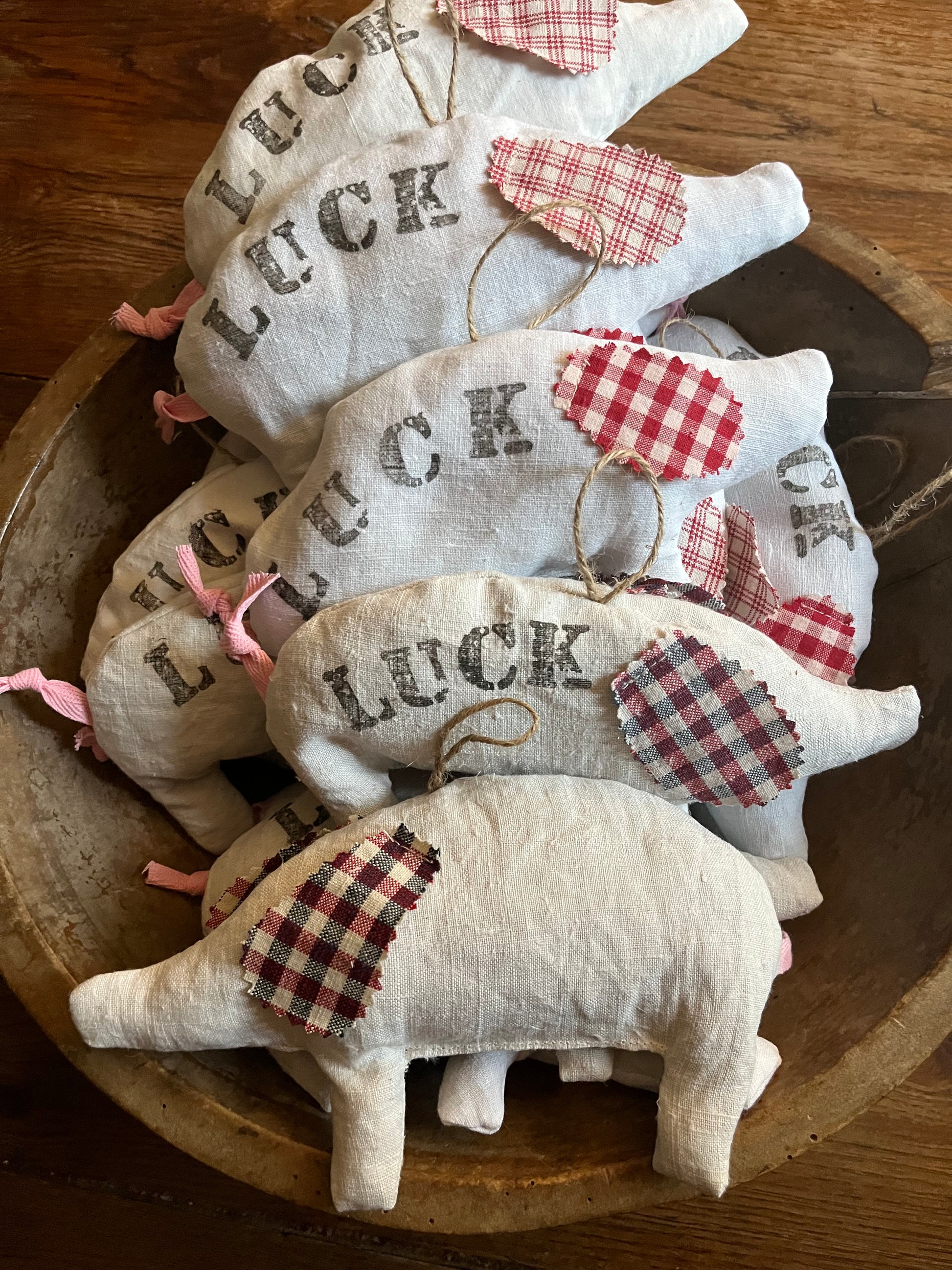 So sieht ein glückliches Schwein aus: jedes Leinenferkel ist mit Lavendel in Kombination mit Dinkel gefüllt und duftet wunderbar. Es hat ein Aufhänger und kommt mit Botschaft: Luck. Also ein echter Glücksbringer.Weil nichts verschenkt werden soll, wird hier im Atelier jedes kleine Stückchen Stoff vernährt und nicht einfach weggeschmissen. So sind die Duft-Säckchen entstanden. Sie sind sauber, von Hand genäht und sorgen nicht nur für ein angenehmes Aroma, sie halten Motten und sogar Spinnen und Mücken fern. Neben dem Kopfkissen wirken sie nach einem anstrengenden Tag besänftigend. Der Lavendel stammt aus der Provence.