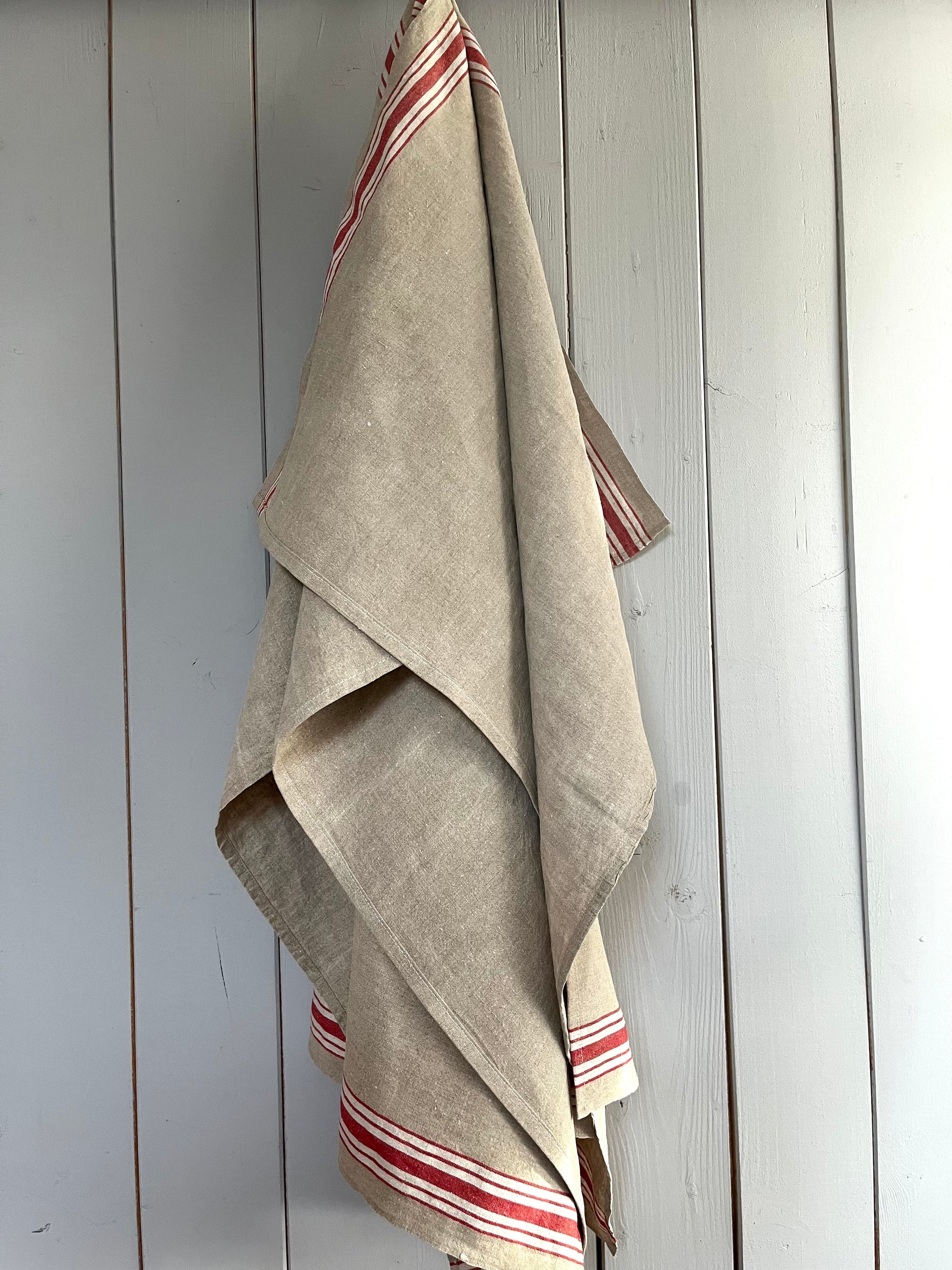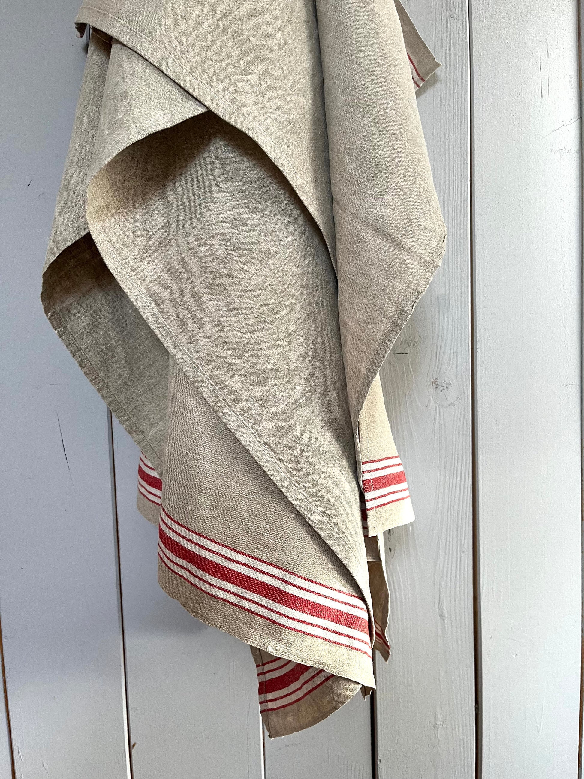 Großes Leinentuch mit breiten rot/weißen Streifen