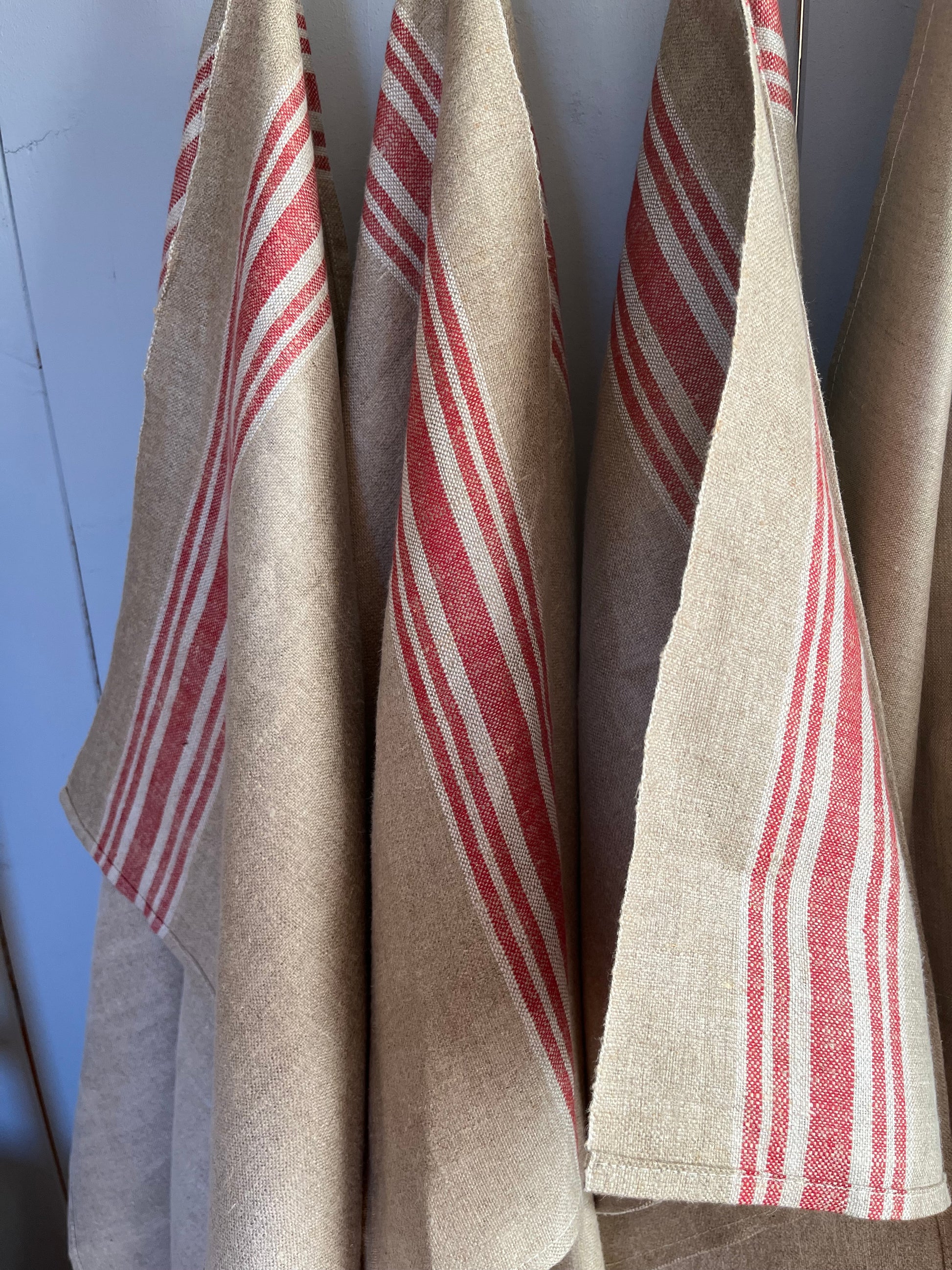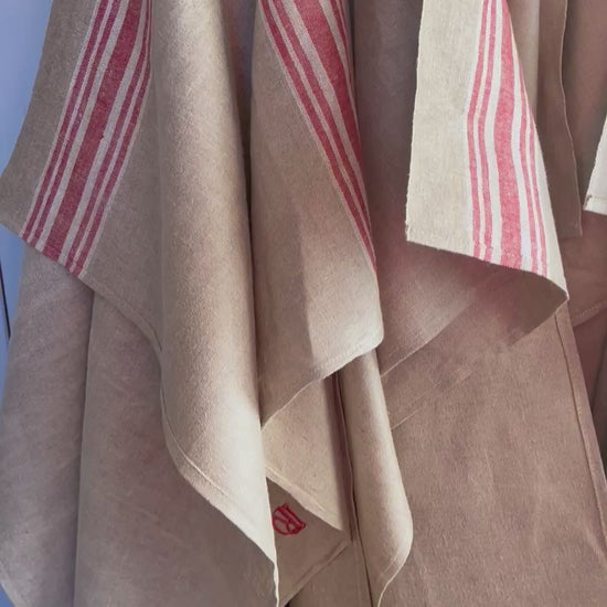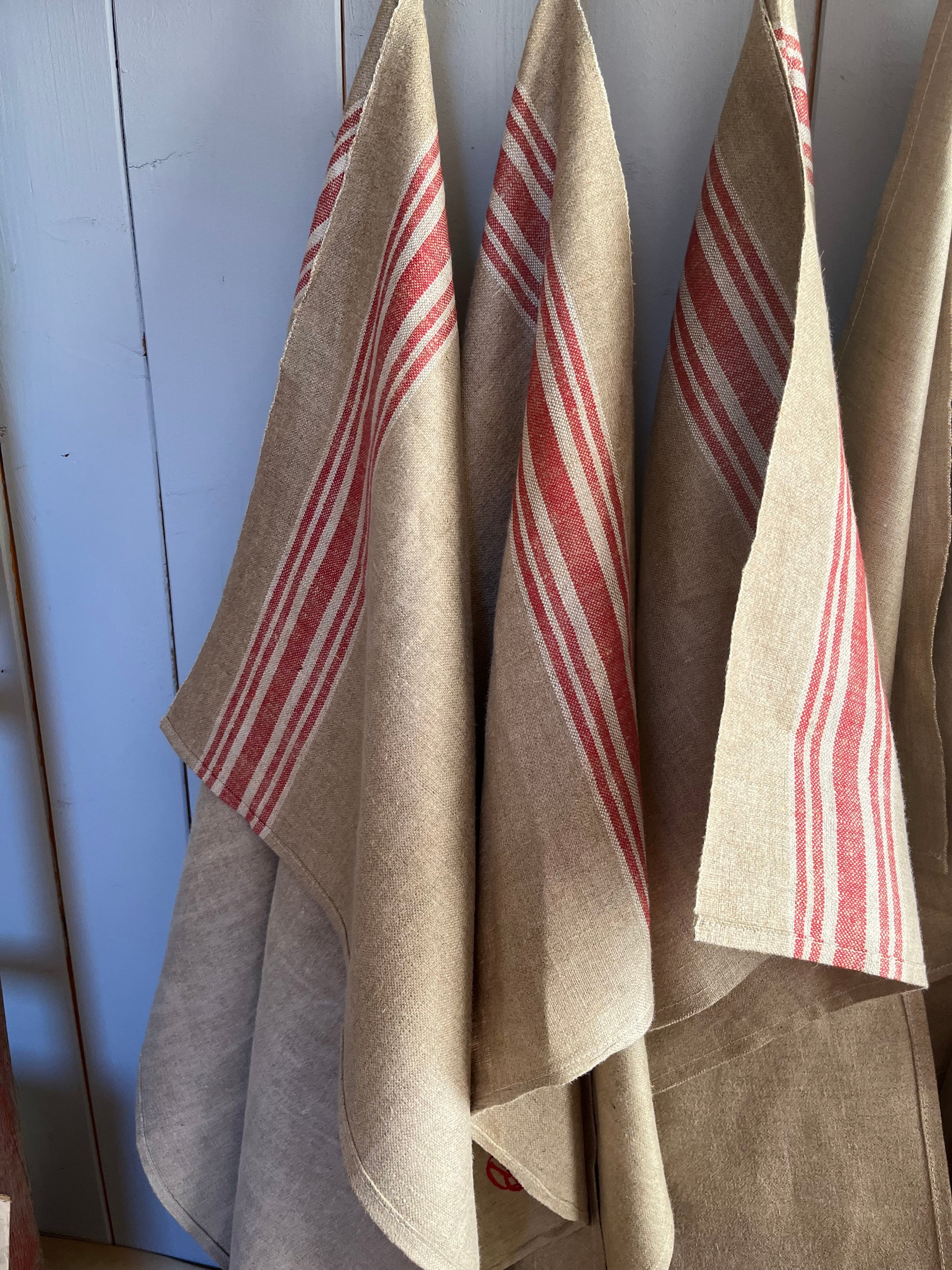 XL Leinentuch mit extra breiten rot/weißen Streifen