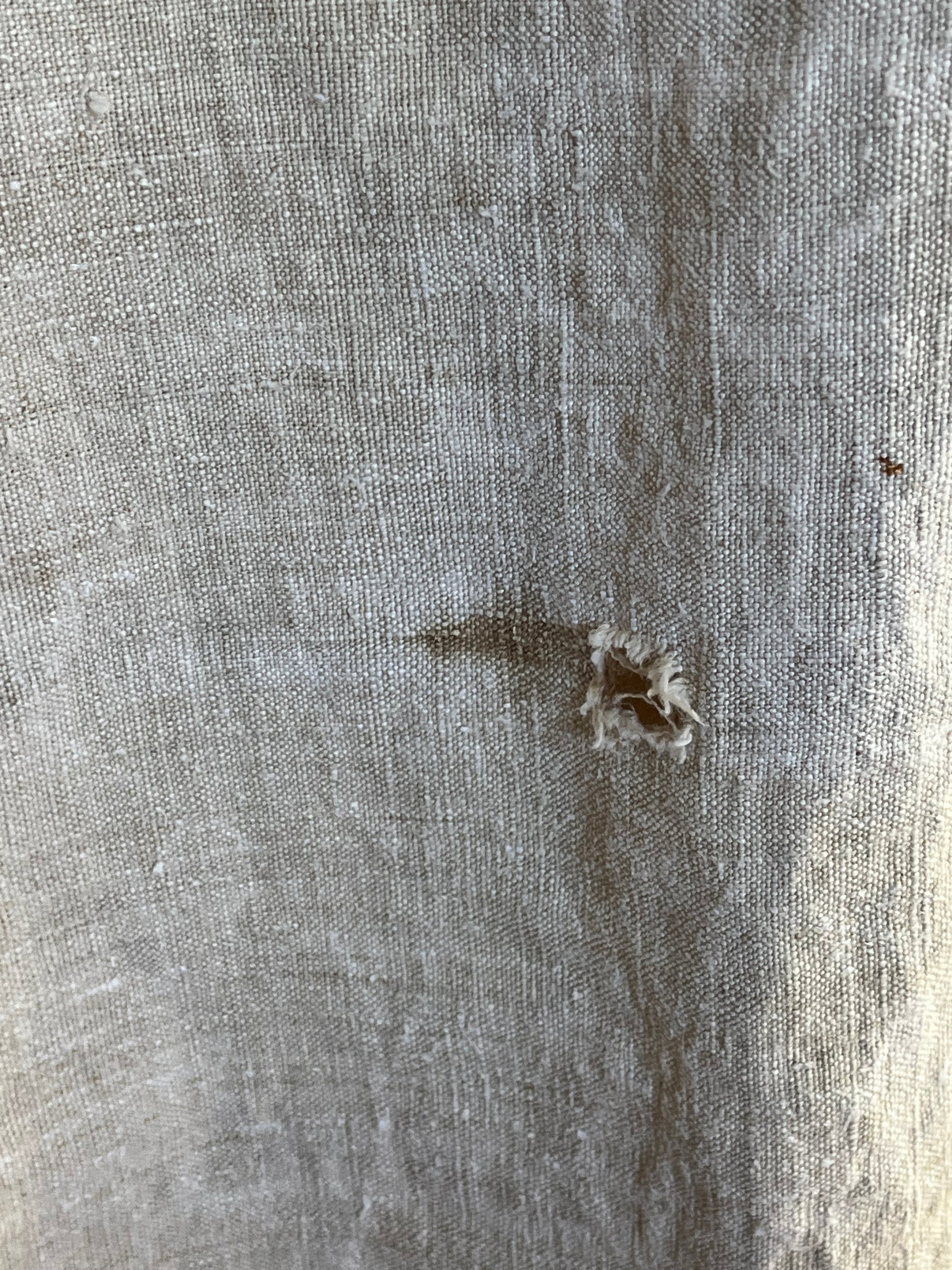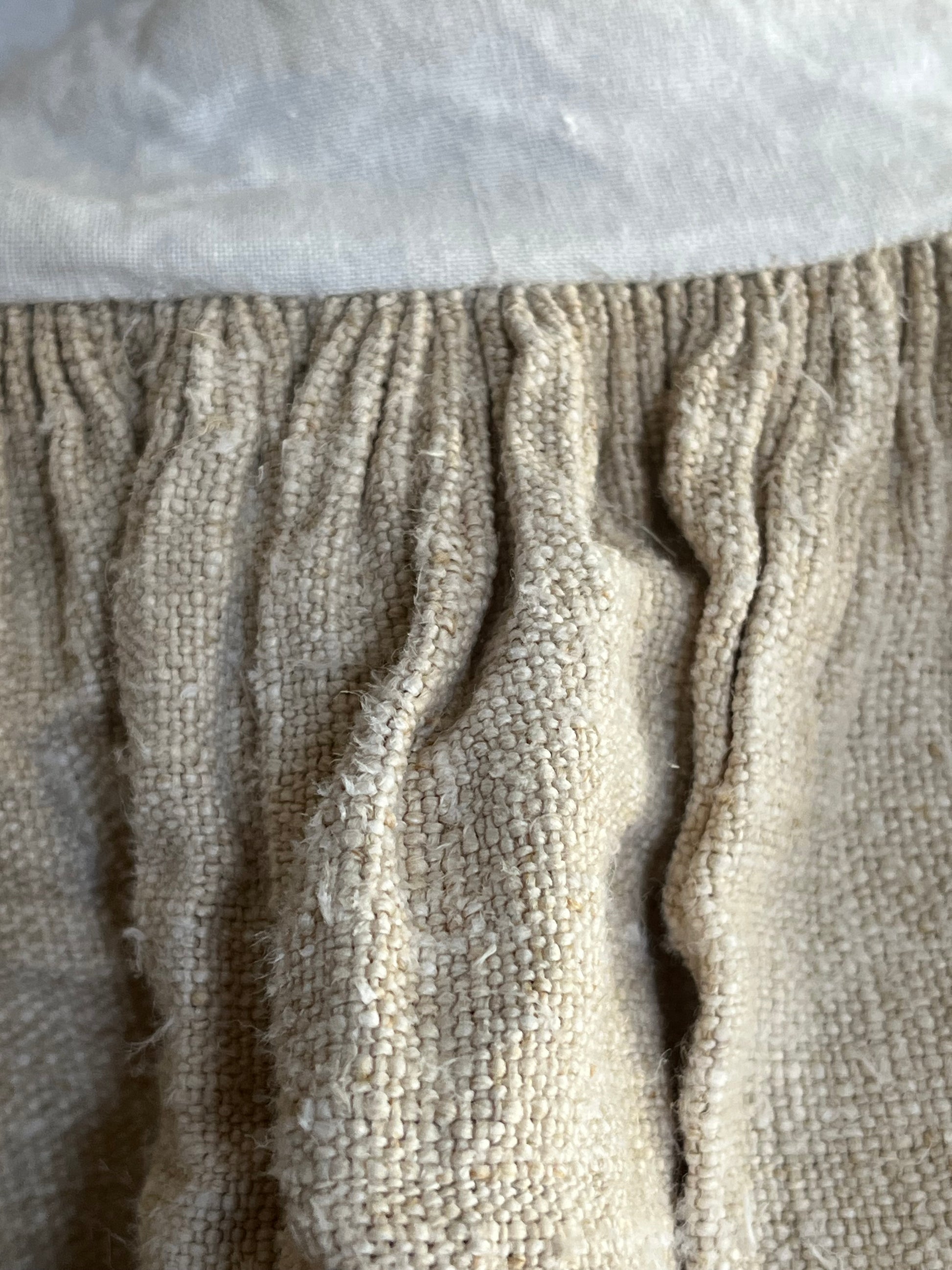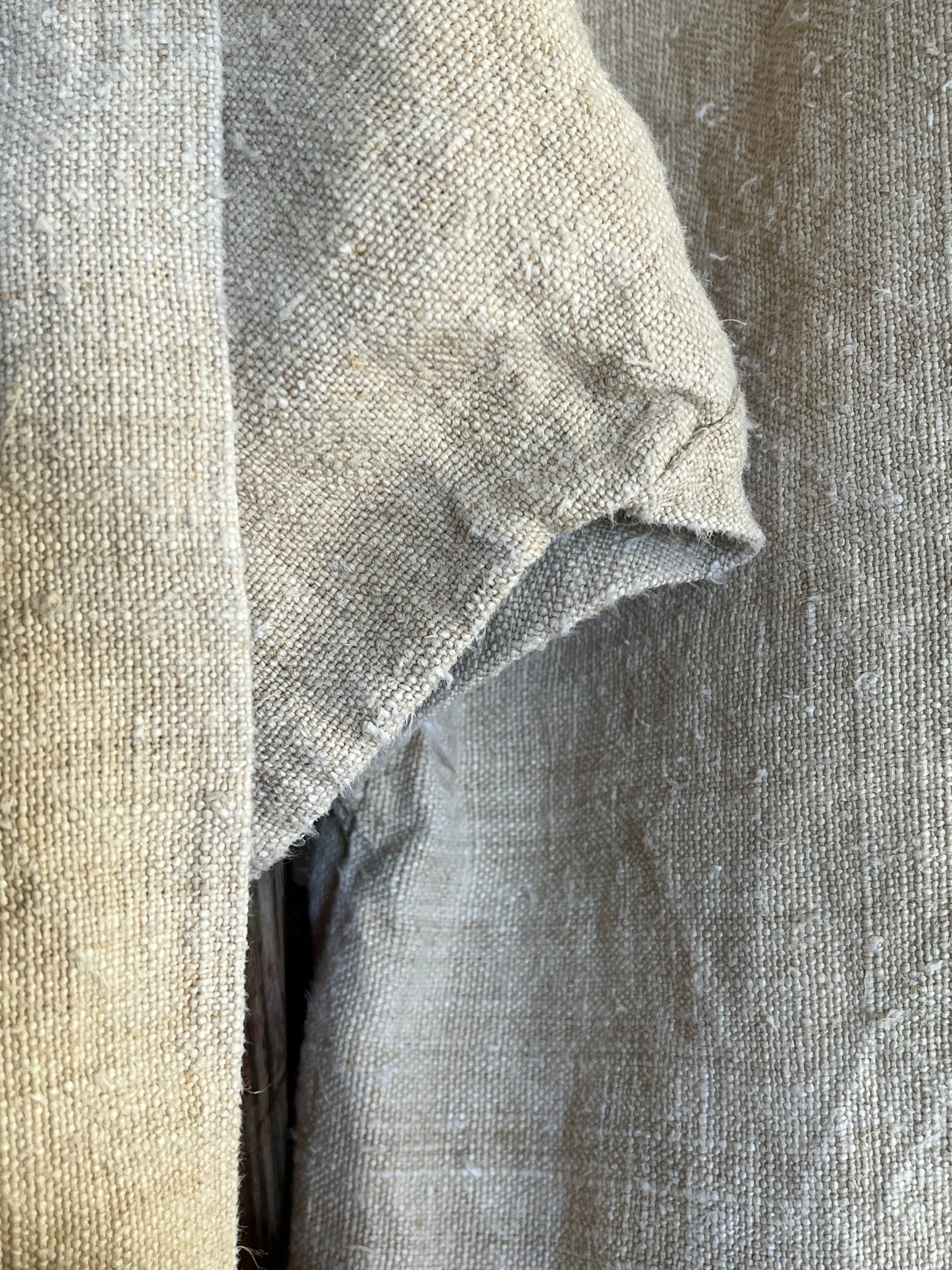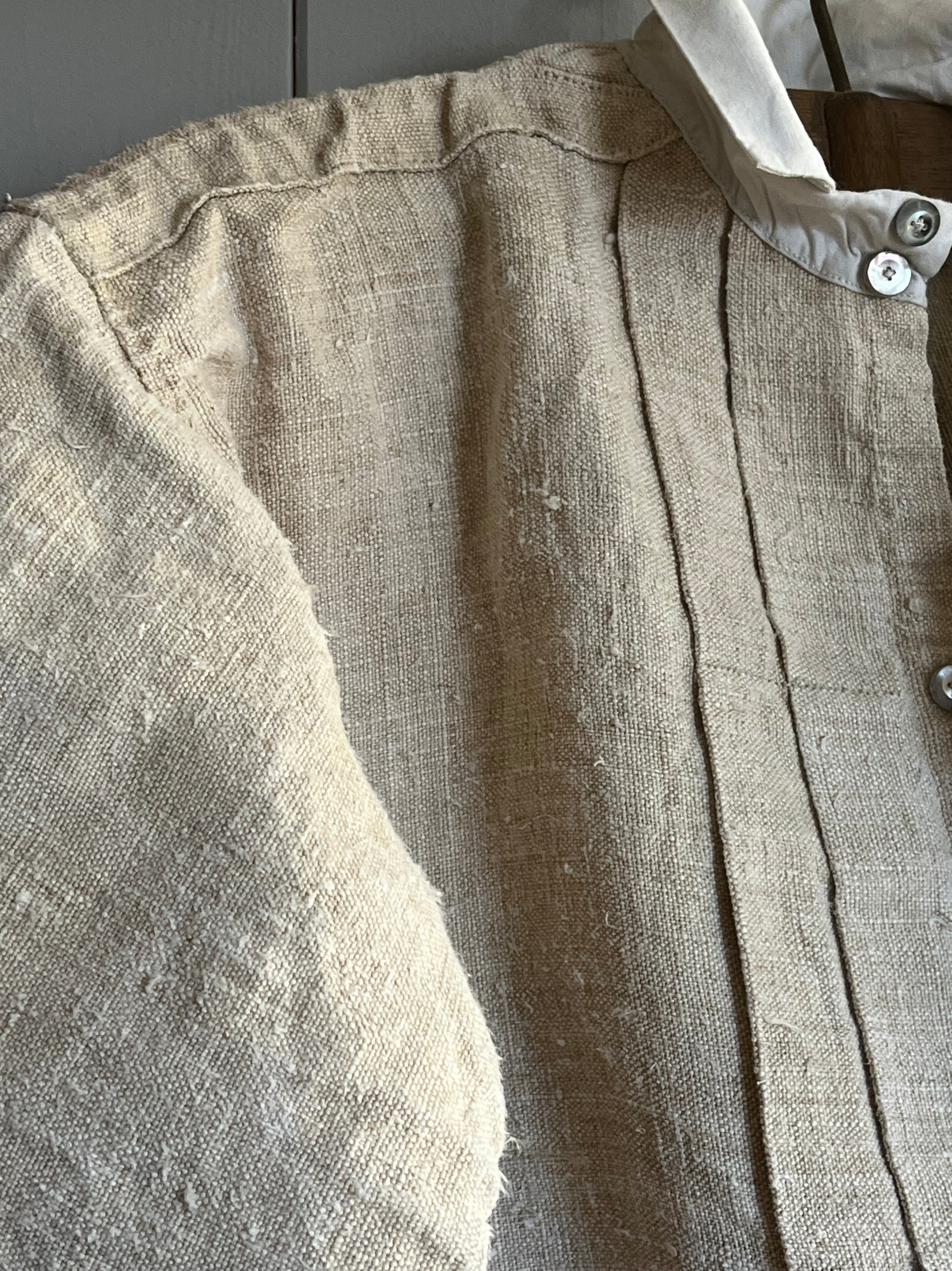 Früher ein Hemd für den Herrn, heute eine Tunika. Dieses schöne Stück wurde aus wunderbarem, altem Hanfstoff genäht - und zwar von Hand. Die Farbe erinnert an Karamell. Das Hemd ist schwer, der Stoff kräftig - es stammt aus Frankreich. Es hat tolle Details. Einen Kragen, ein Monogramm und Faltenlegung im Oberteil . Es wird hier ausdrücklich als Hemd zum Verarbeiten angeboten, denn im Rückteil hat es ein Loch. Man kann das schöne alte Stück kürzen, so dass es ein Oberteil ergibt oder aus dem Stoff etwas Anderes anfertigen. Es ist auch ein außergewöhnliches Dekostück.