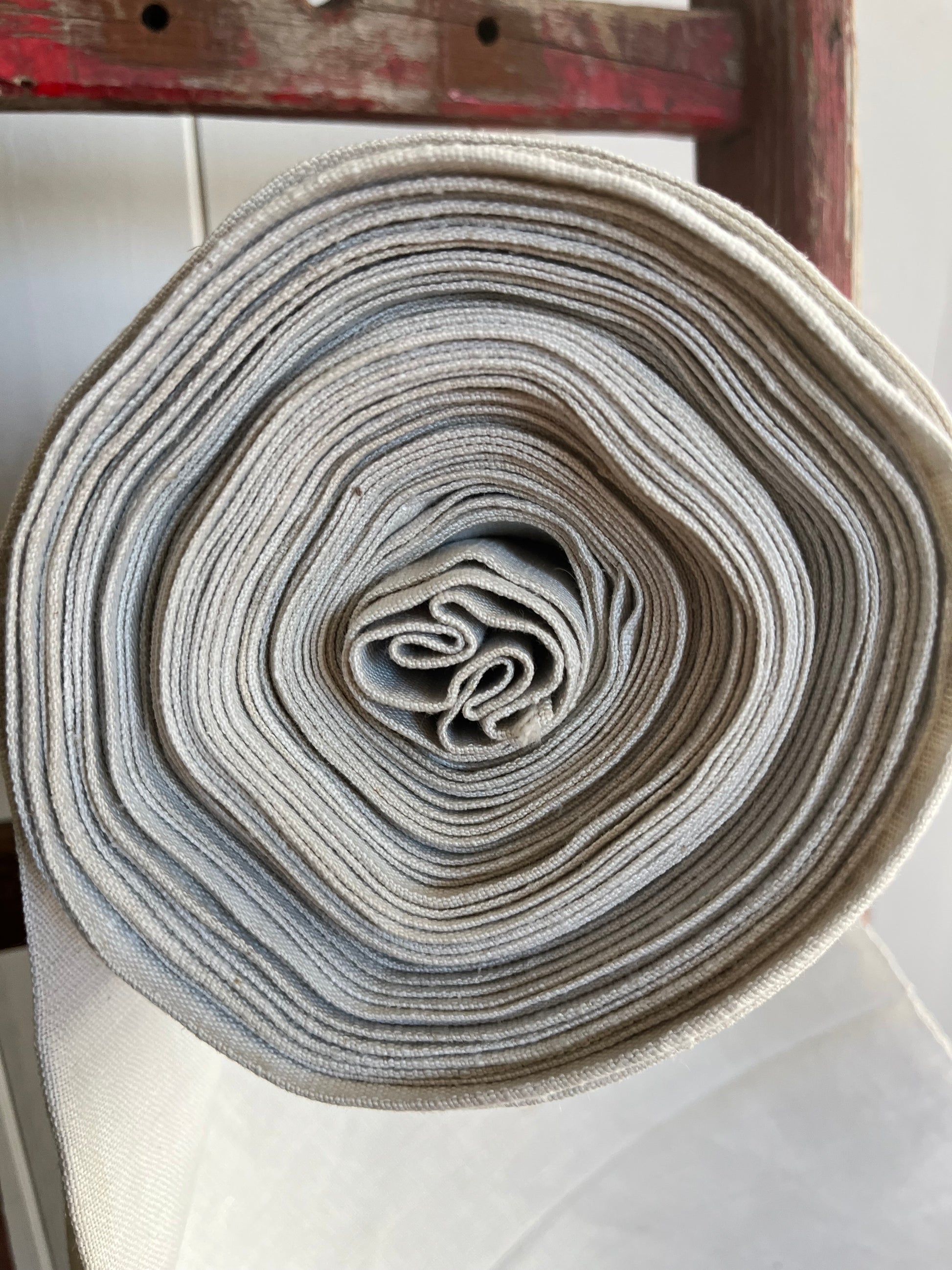 Solch ein sauberes Leinen gibt es nicht mehr oft. Es stammt aus den 1930er Jahren. Es sind 13 Meter im Ballen, die Breite beträgt 67 cm. Das Leinen wirkt, als wäre es gerade erst vom Webstuhl gekommen und aufgerollt worden. Es ist fein gewebt, fühlt sich schön glatt an, zeigt aber die Leinenstruktur. Ideal für Kleidung und Haushalts-Textilien. Farbe ist ein gedecktes Weiß. Gewicht etwa 2,3 Kilo. Irgendwo in der Mitte des Ballens habe ich zwei Schatten-Lagerspuren gesehen, das dürfte aber von den Flachsblättern stammen. Das verschwindet mit der Wäsche. 13 m im top Zustand zu einem wunderbaren Preis.
