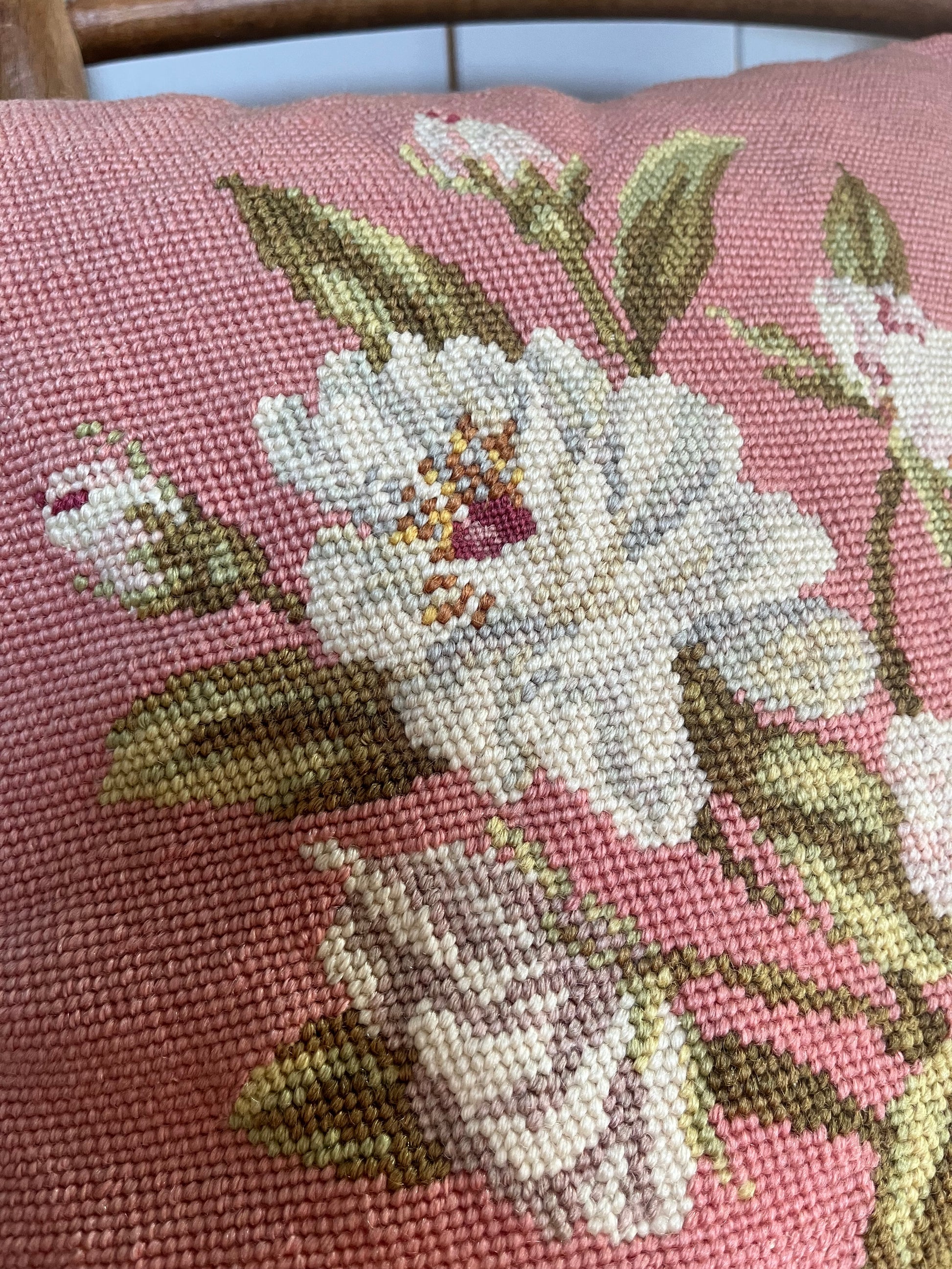 Voilà: bezauberndes Kissen aus Frankreich mit Petitpoint Stickerei